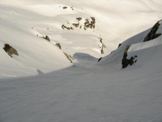 innevamento buono su tutto il percorso,canale con qualche rigola ma sciabilissimo.