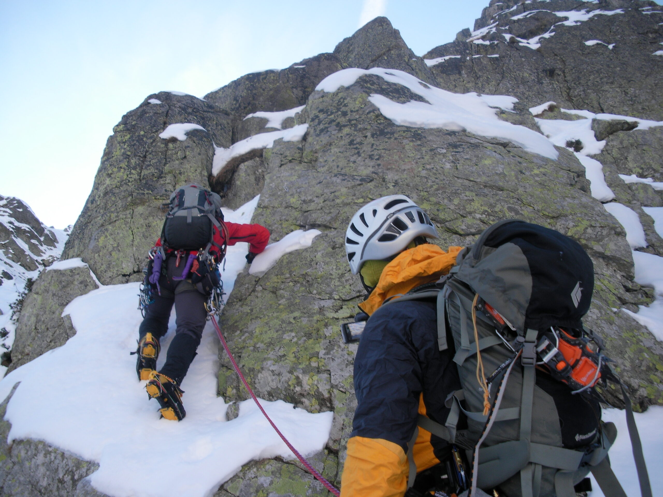 Bella via di misto, anche se breve adatta come approccio ai disagi cui si va incontro in quei casi, quando si deve arrampicare all’ombra e al freddo con neve in sovrabbondanza, su impegnativi tratti di roccia ramponi ai piedi. Un saluto a Davide e amici che hanno avuto la bella idea di propormela.