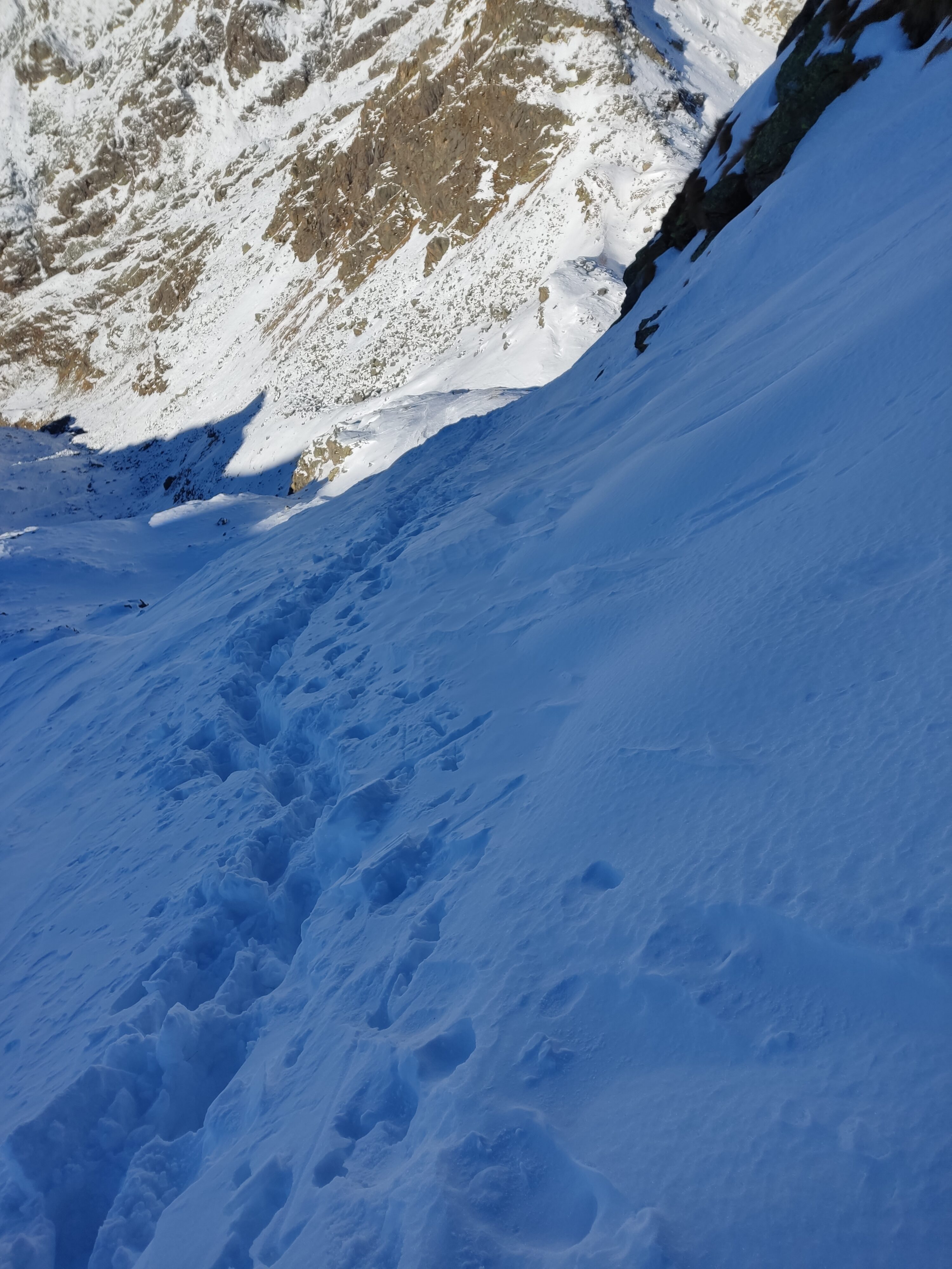 Necessari piccozza e ramponi oltre la bocchetta del lago. Con abbondante innevamento e neve dura la cresta può presentarsi decisamente affilata e i pendii laterali molto delicati.