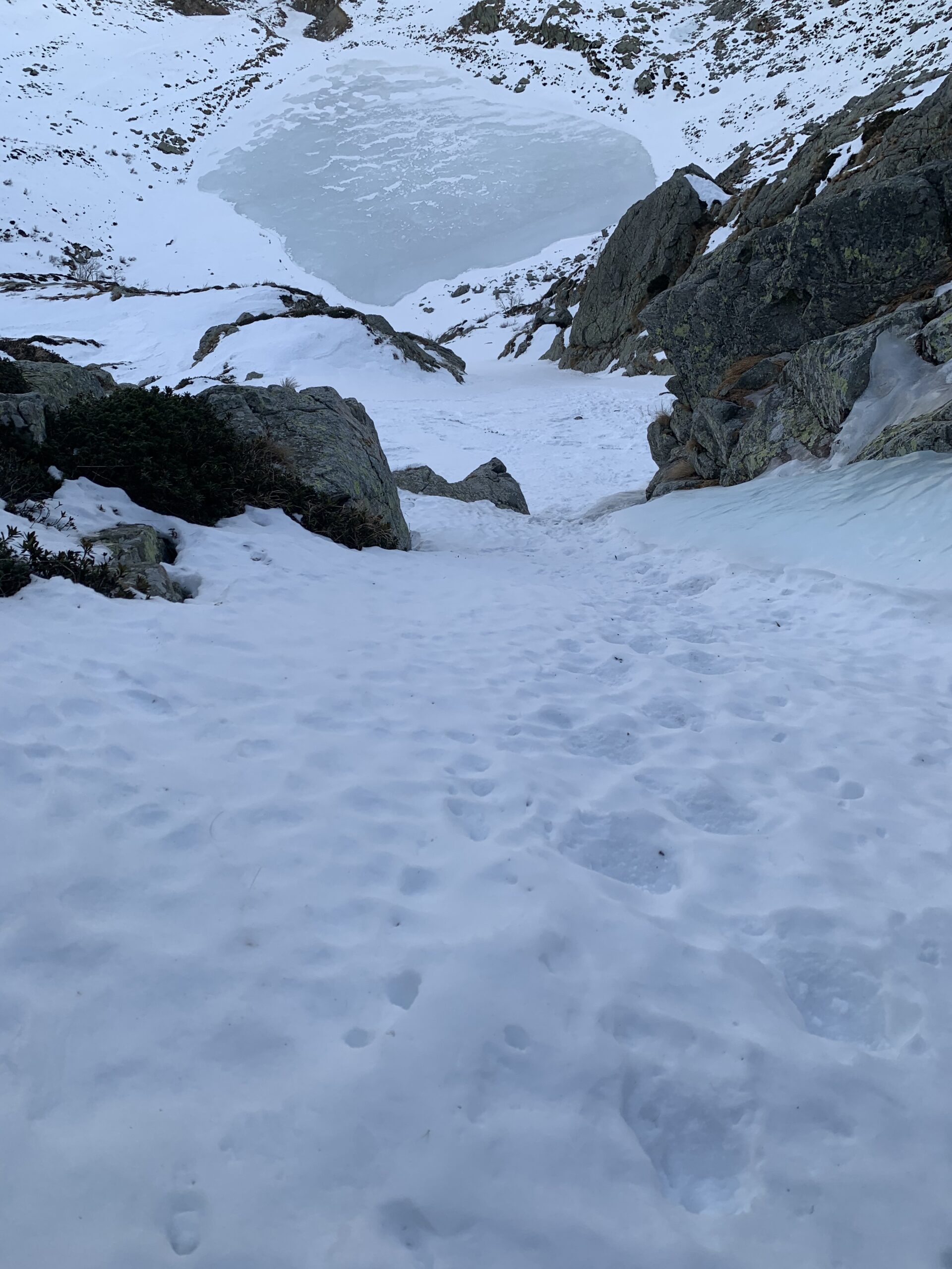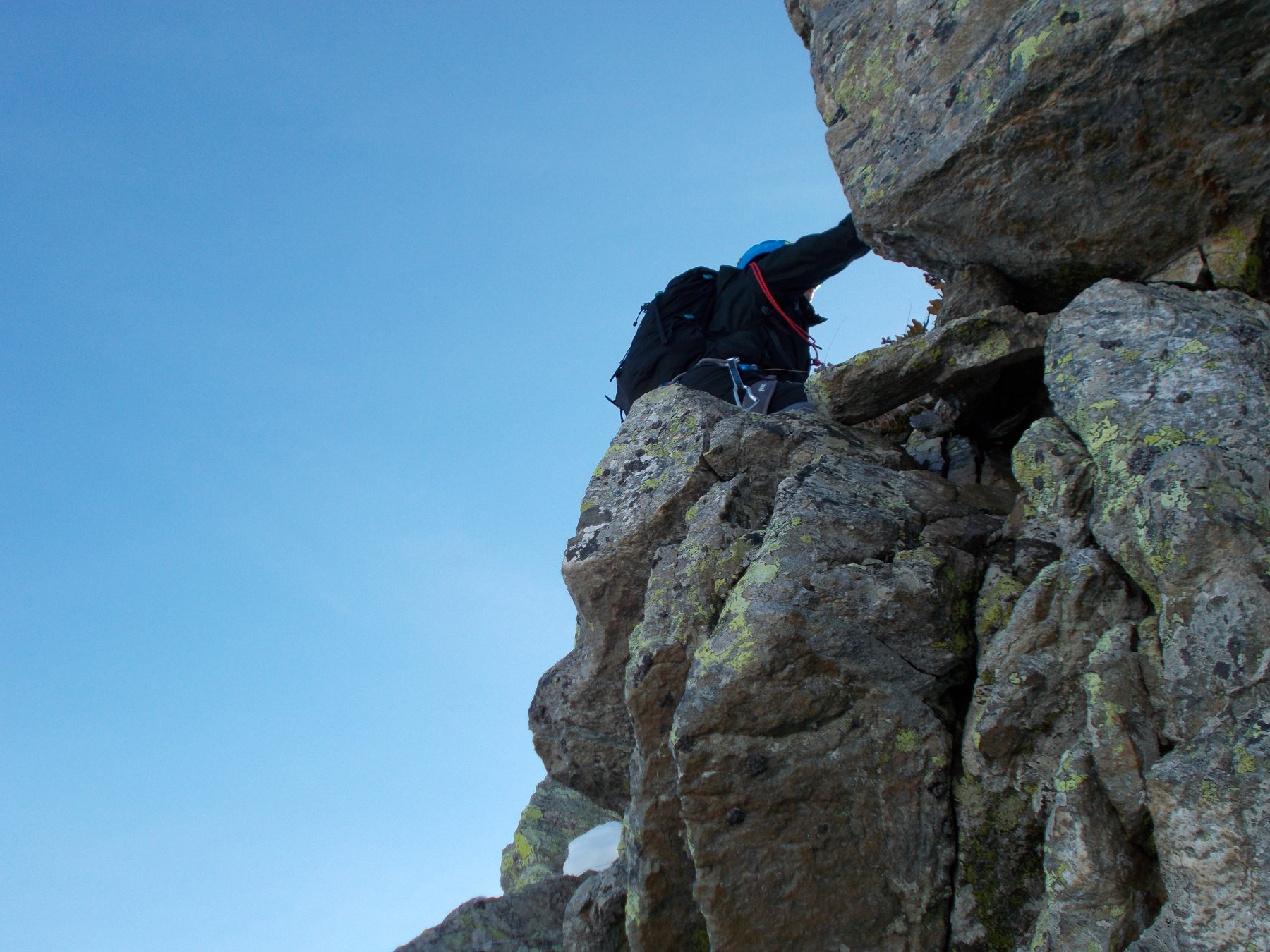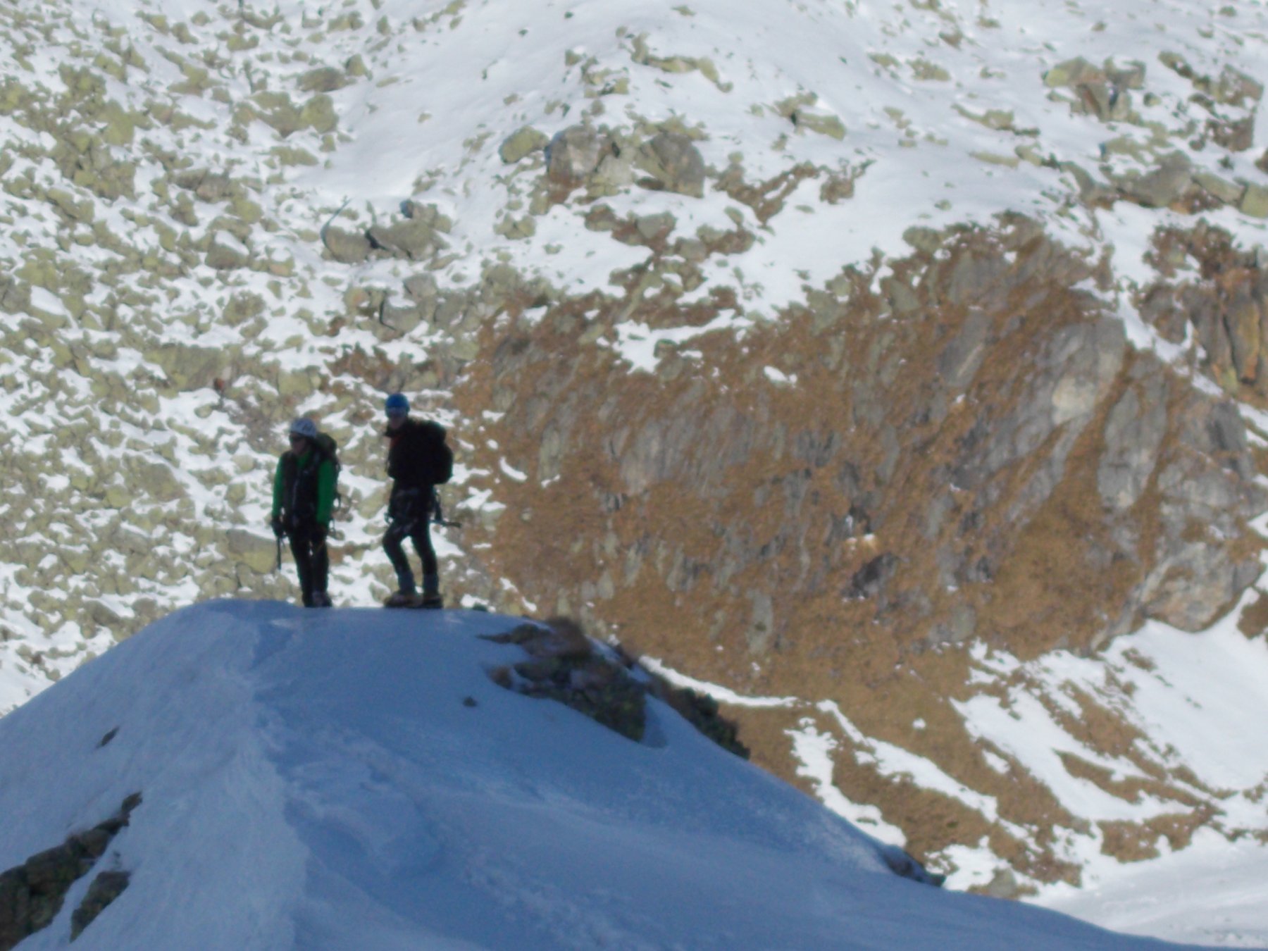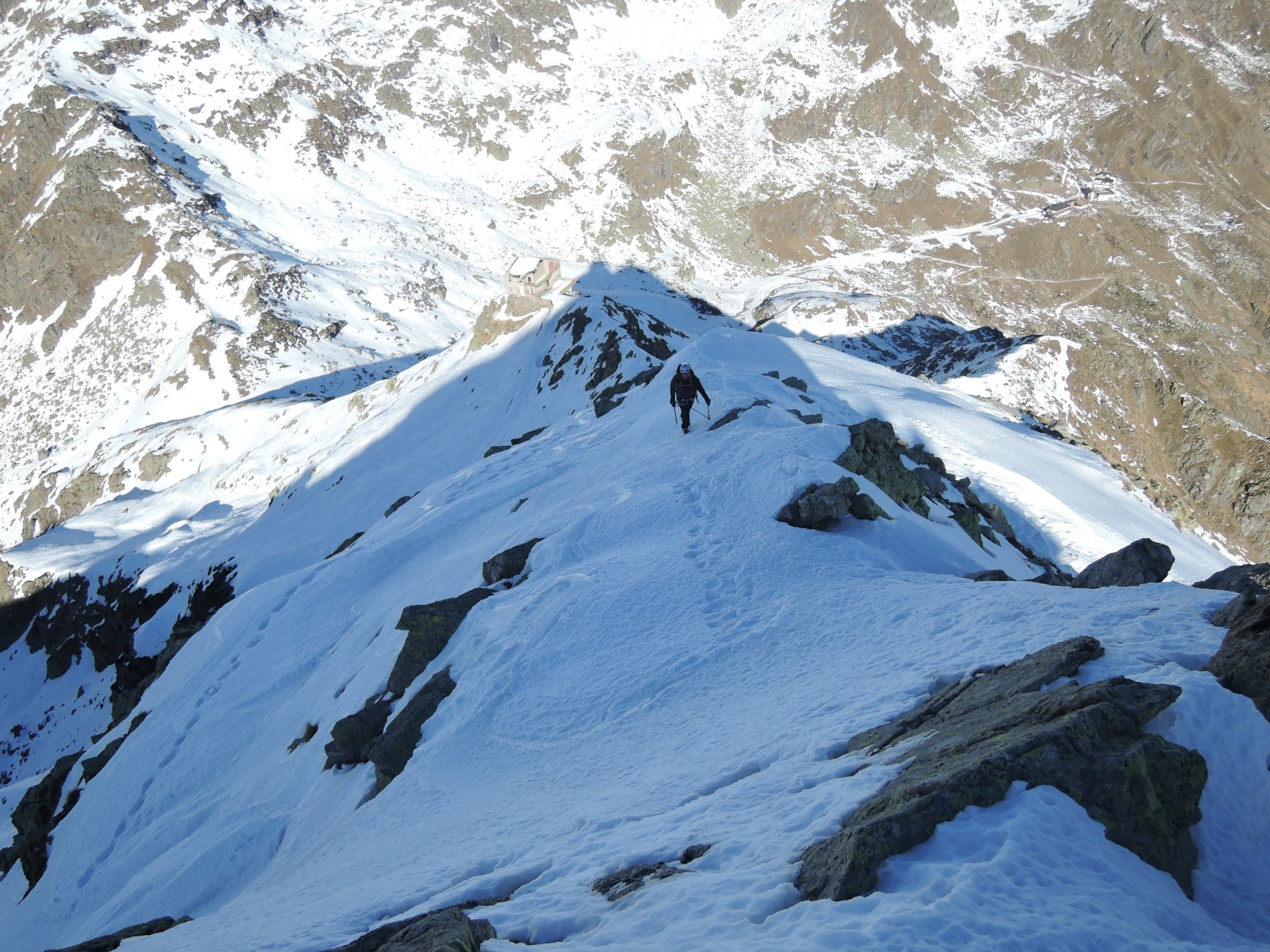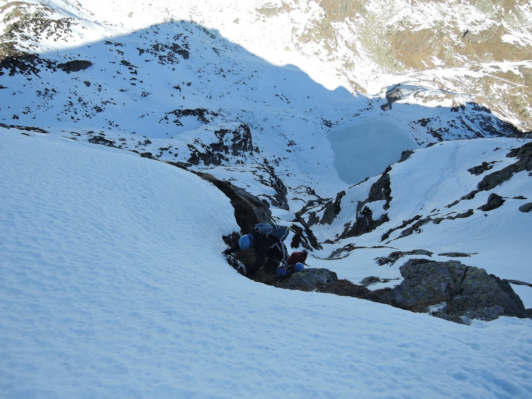 Discesa: lungo la via normale per la cresta NO e la bocchetta del Lago.