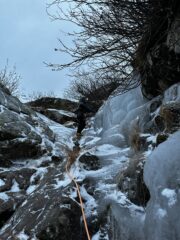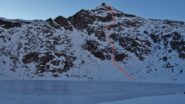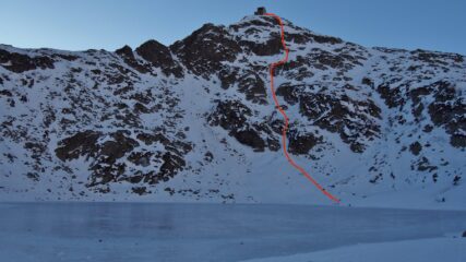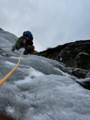 Via di misto e ghiaccio in base alle condizioni con piccole goulotte di secondo grado e arrampicata di misto su roccia m4.
