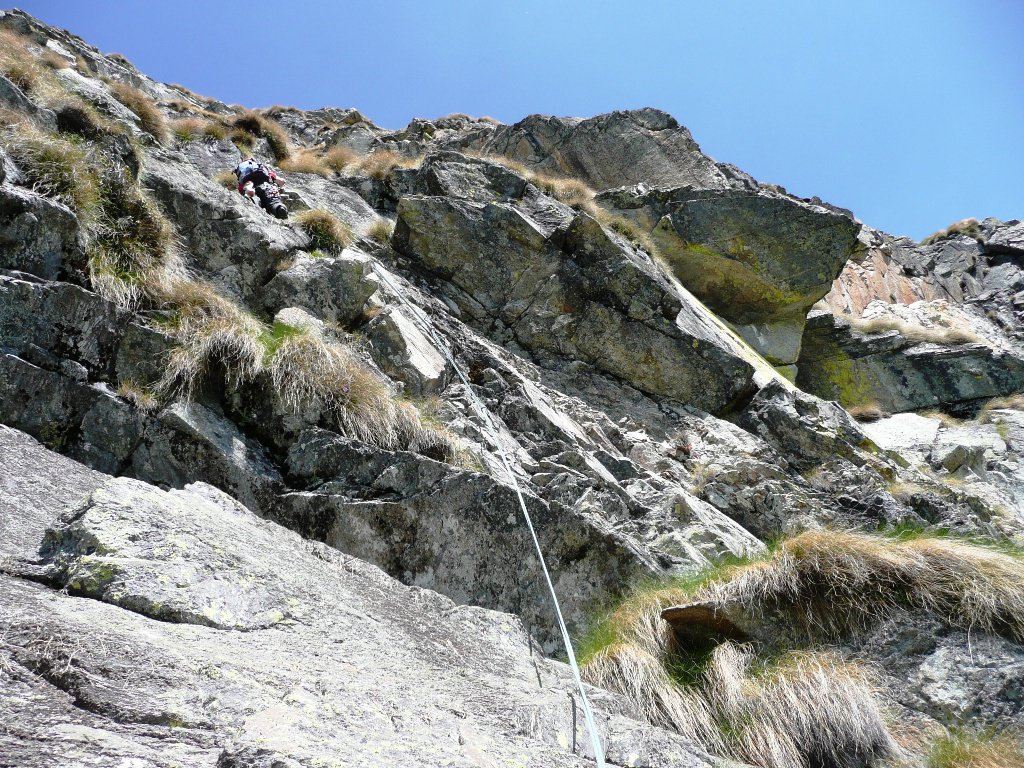 L3: diedro verticale poi piccoli muri 5b+, 5a, 30 metri, tiro chiave della via