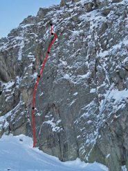 Discesa: in doppia sulla via, è sufficiente una corda da 60 mt. da 9mm usata doppia.