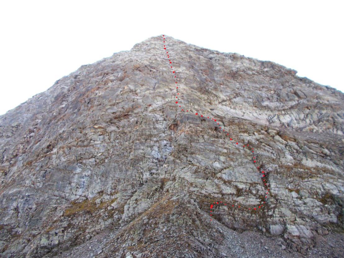 Superare alcune rocce accatastate portandosi sulla linea di cresta percorrendola integramente sino alla vetta (mt 2895).