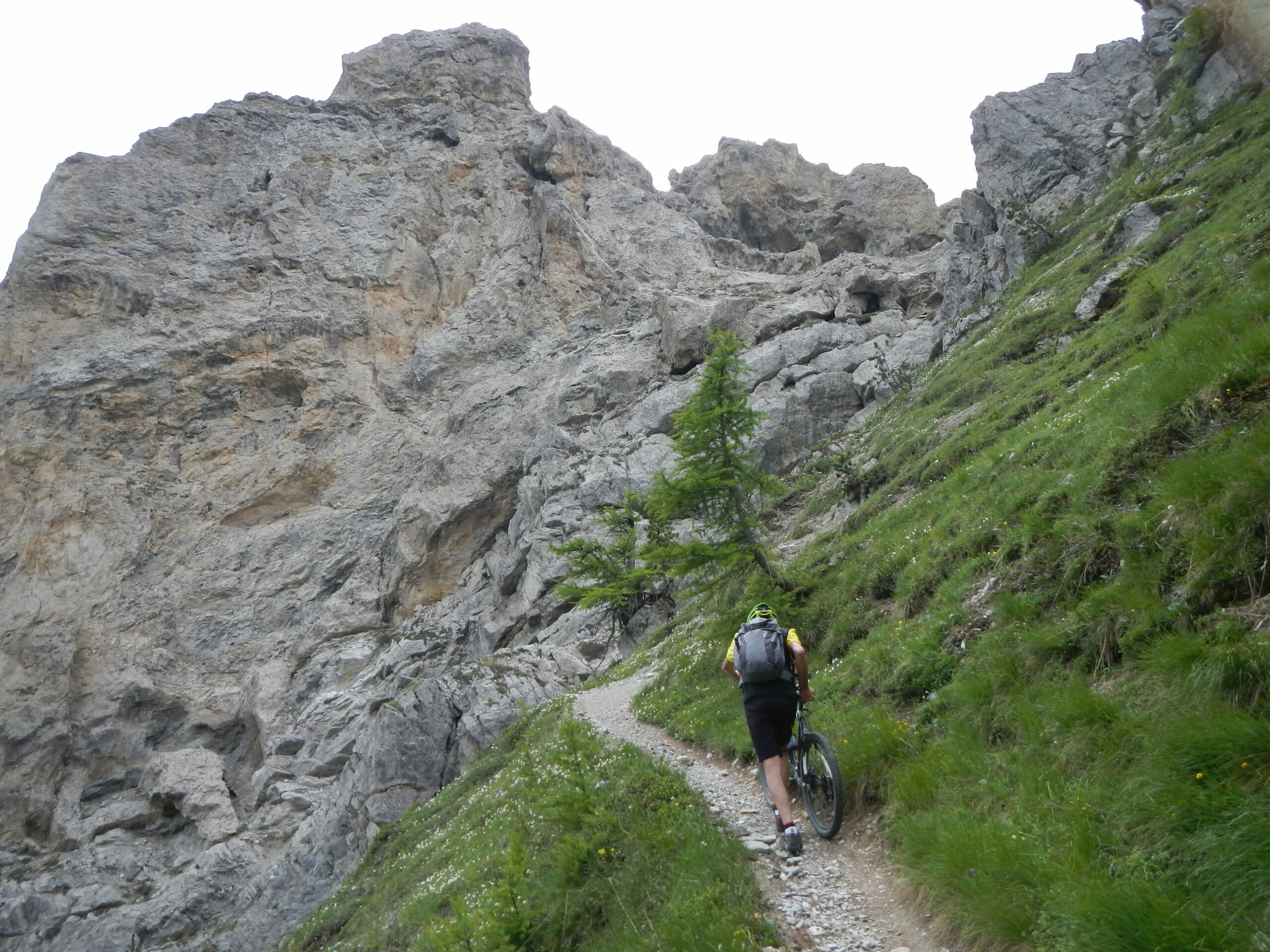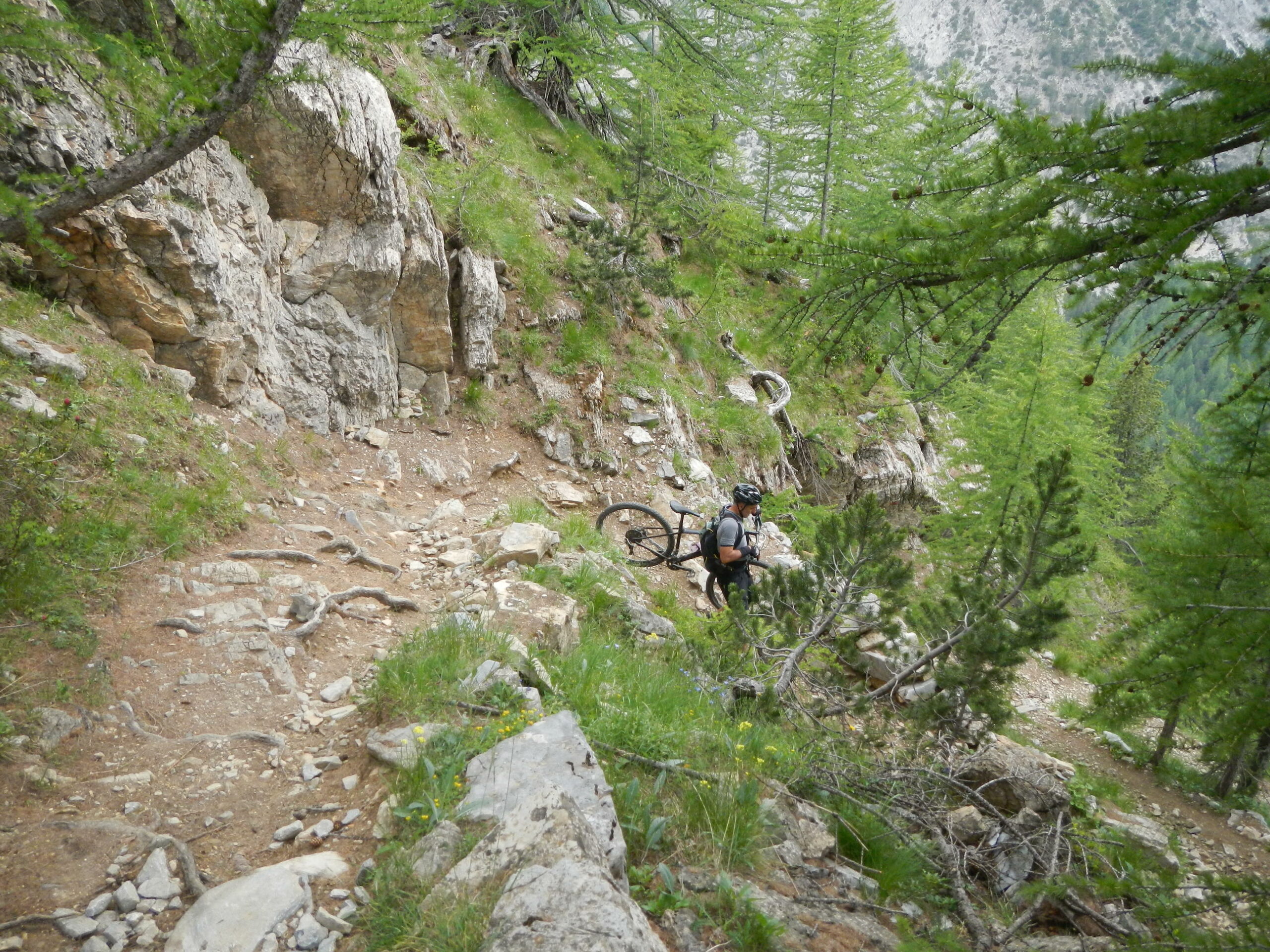 -il sentiero di discesa sul Colle della Scala presenta pochi tratti ciclabili e molti in cui si scende con la mtb al fianco.