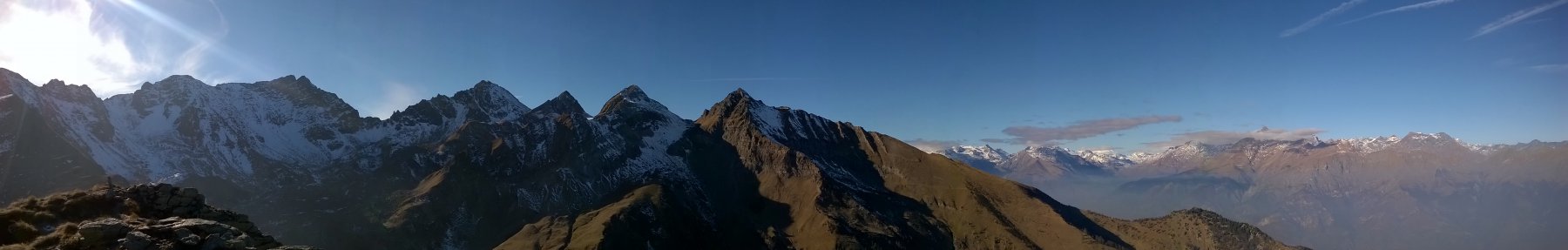 Tiepida giornata autunnale . Al colle del vento non una bava di vento; ; saliti a punta Muret dove il panorama è molto più aperto.