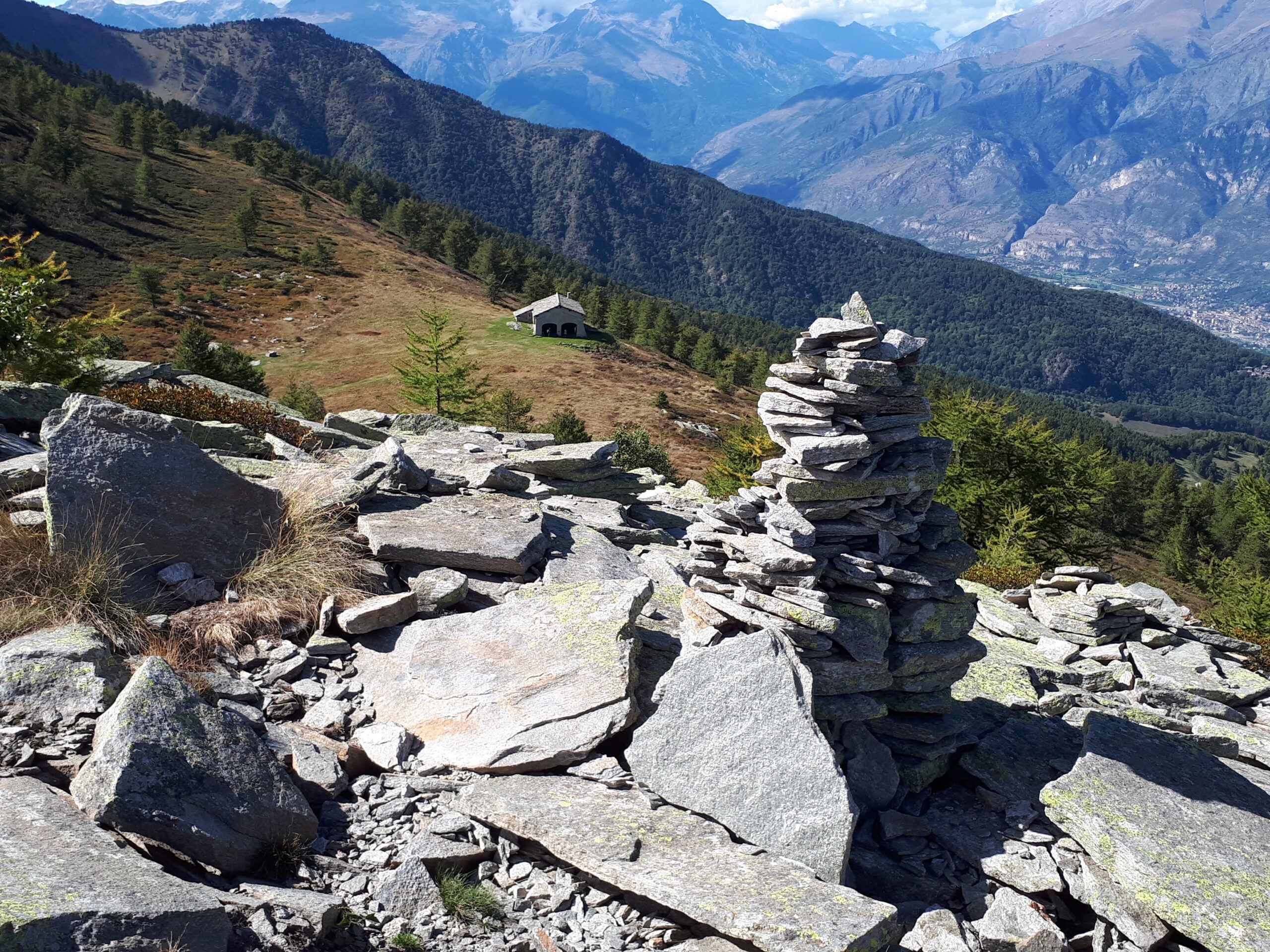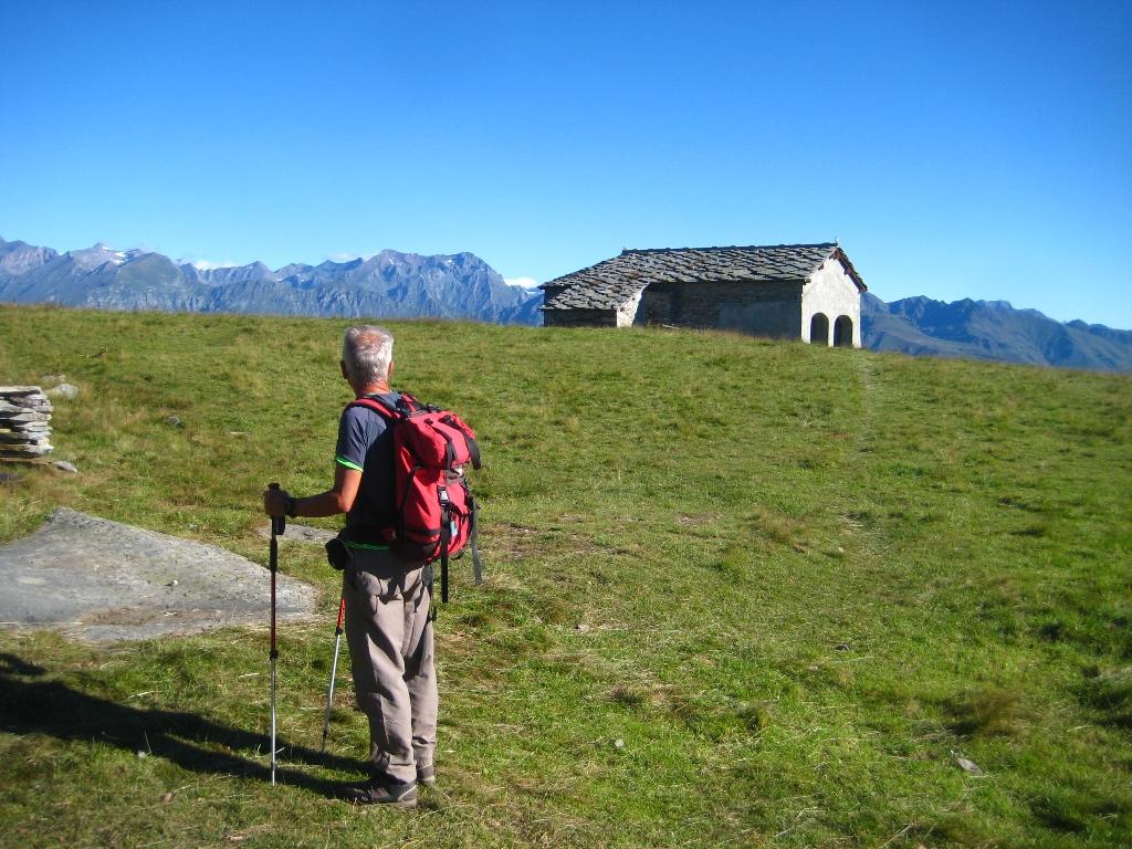 Ritornati sul sentiero principale, si riprende a salire, si esce dal lariceto e si giunge in breve alla chiesetta di Pian del ‘Orso, sempre uno spettacolare punto panoramico.