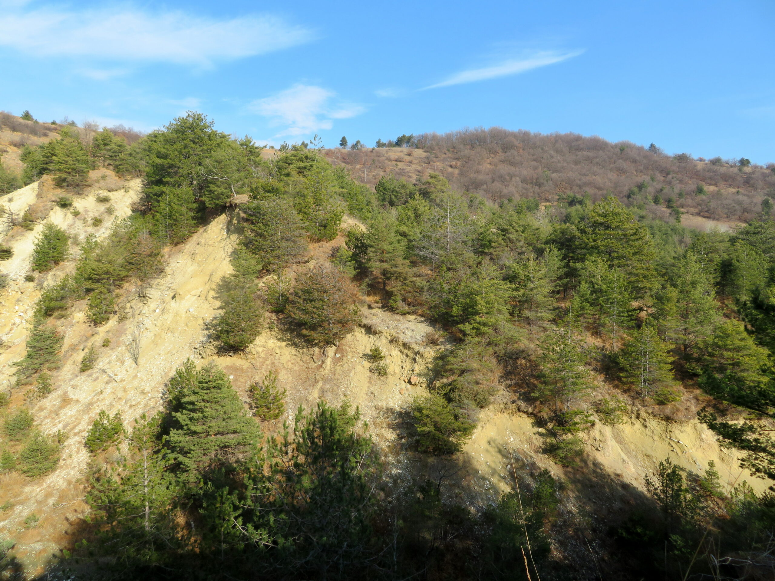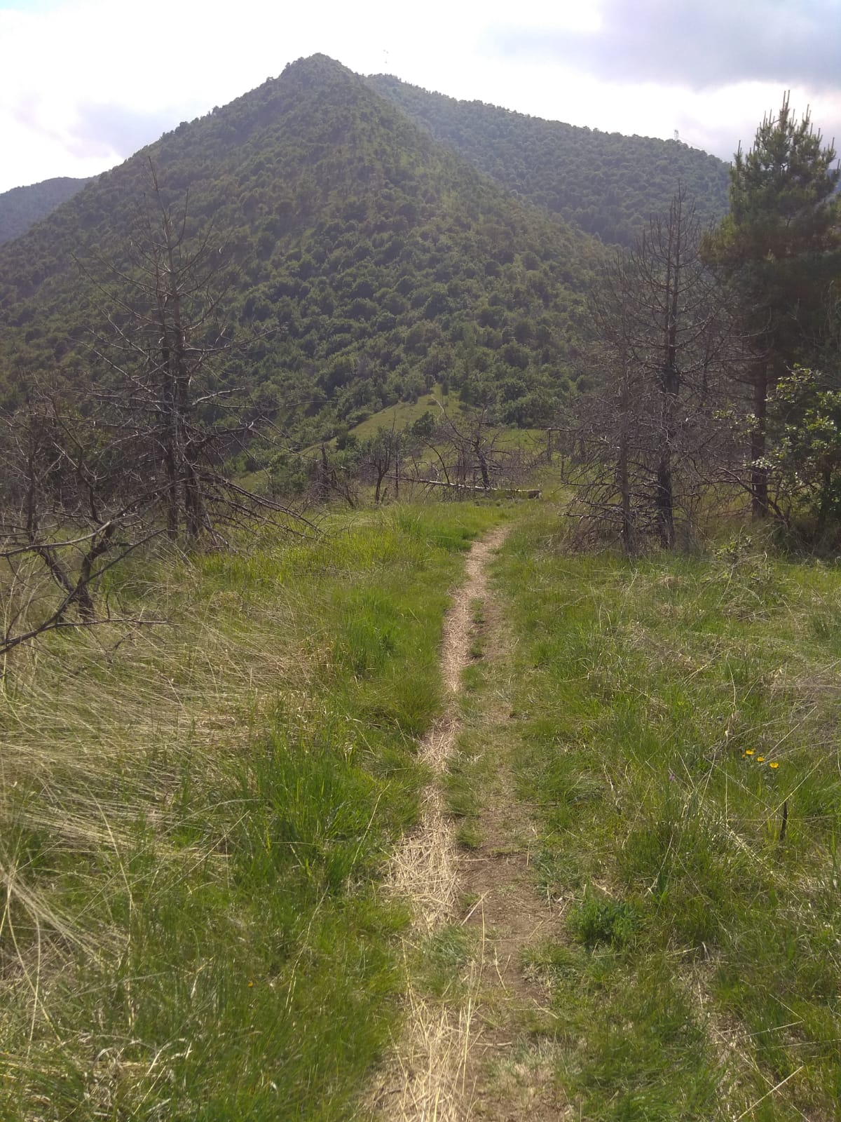 A quota 950 m. si abbandona la cresta arrivando al Pian d’la Feja, dove un sentiero molto più marcato porta in breve al Pian della Sisterna, e da qui in una manciata di minuti alla croce di vetta.