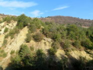Si prosegue dietro alla cappella,a destra in discesa in direzione del Musinè perdendo circa 30 metri di quota, passando sopra le ex miniere di magnesite di Caselette, fino alla base della cresta nord del Musinè.Si riprende a salire lungo il crinale sul sentiero nel primo tratto molto ripido,segue tratto sempre in cresta e sempre tra la bassa boscaglia.