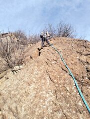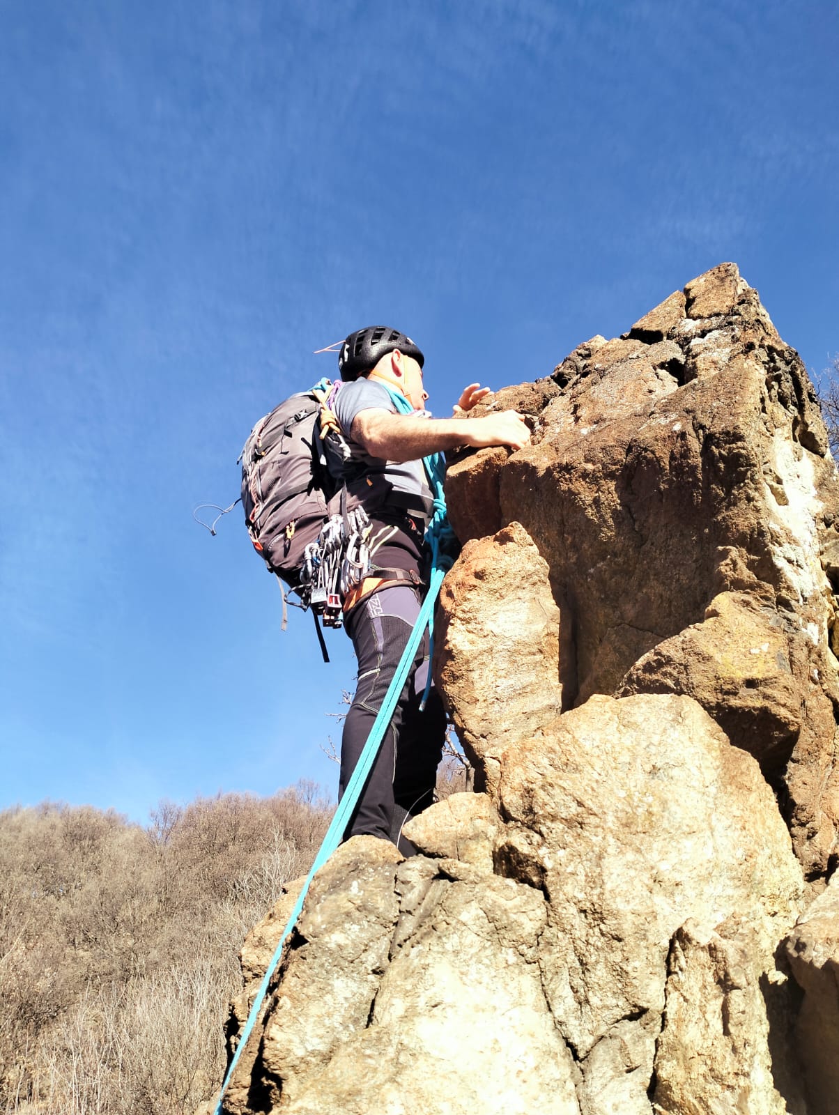 Bellissima roccia in ambiente particolare, scalata insieme a Paola, tutta in scarponi, ma le scarpette su certi passaggi darebbero maggior sicurezza e la possibilità di osare su placca vera.