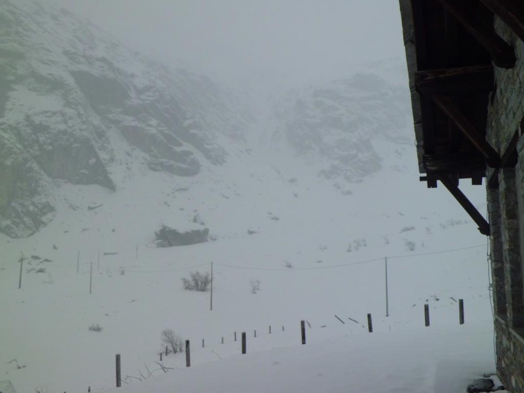 Nevicata “strozzata” dalla temperatura molto bassa, -7 a Balme, con fiocchi piccoli e gelati. Dai 20 ai 30 cm di neve polverosa. Saliti fino al Ciriè. Con Simone e Luna.