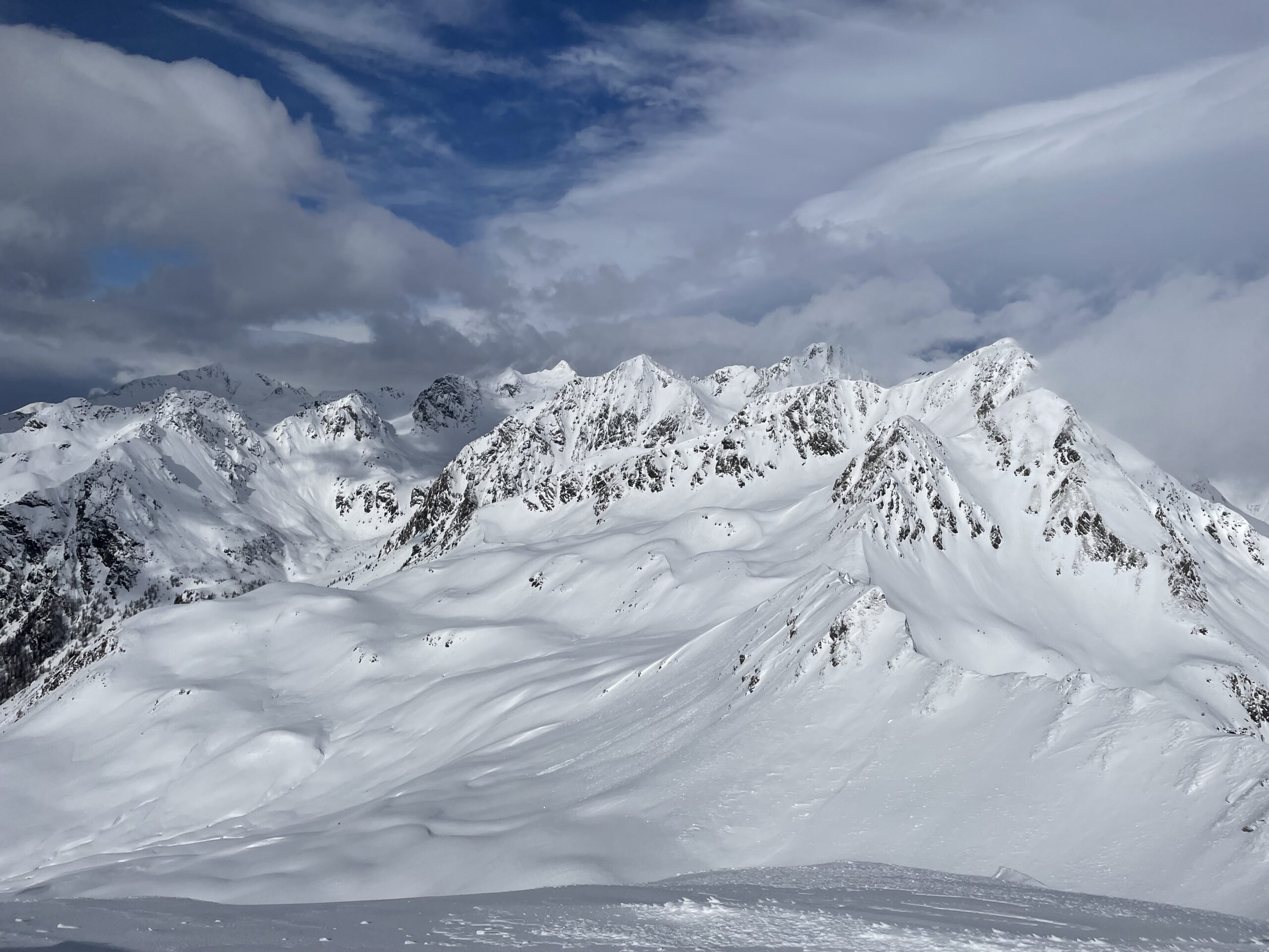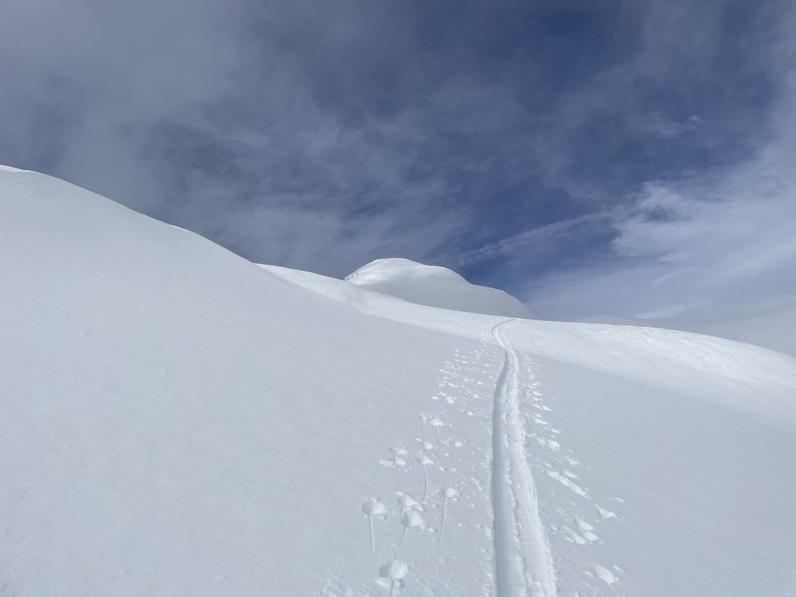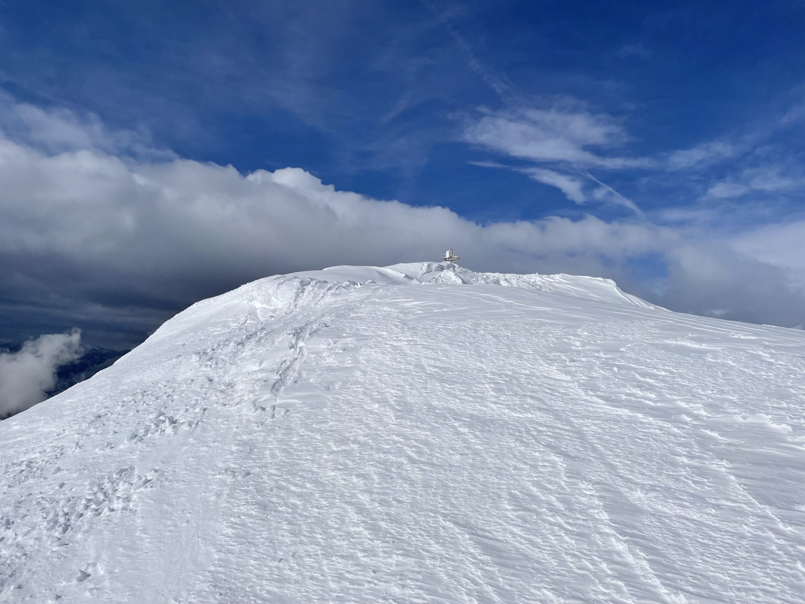 Si segue la poderale che prosegue verso N fino a Pichlerbergalm a 2050mt. Sempre verso N per dolci pendii fino a 2300 dove si piega a Ovest e si giunge per un pendio più ripido all’evidente cima di Mutta (Mutennhock). Tornati a 2300 si risale verso Est puntando la croce a 2400 circa che non è riportata sulle mappe ma sulla croce stessa denominata Hoher Spitz.