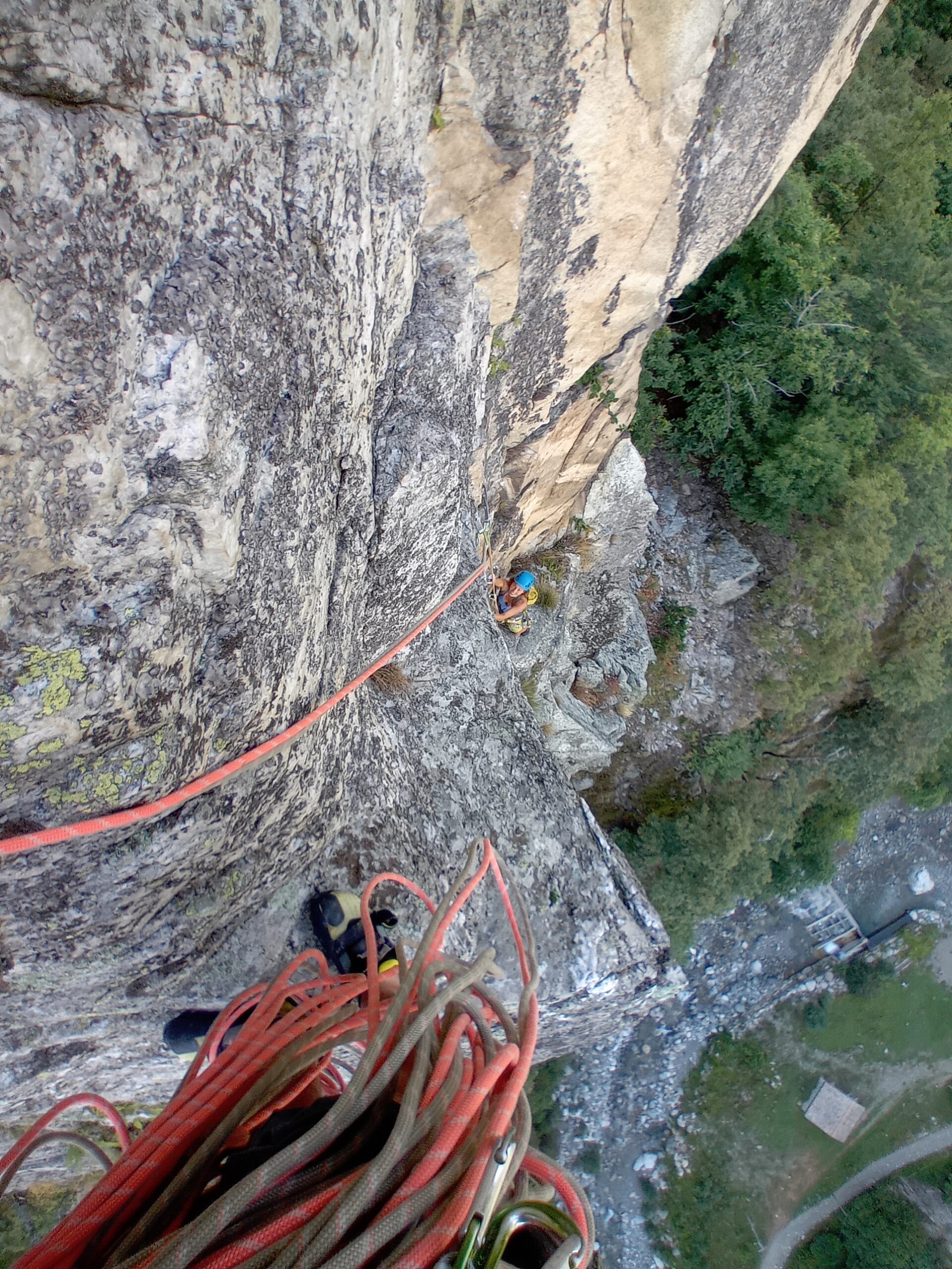 L11 – 6a/b in partenza 3 spit poi 5+,sosta su 2 spuntoni(forse è possibile saltare la sosta e unire idue tiri, ma non so ancora se tirano le corde)