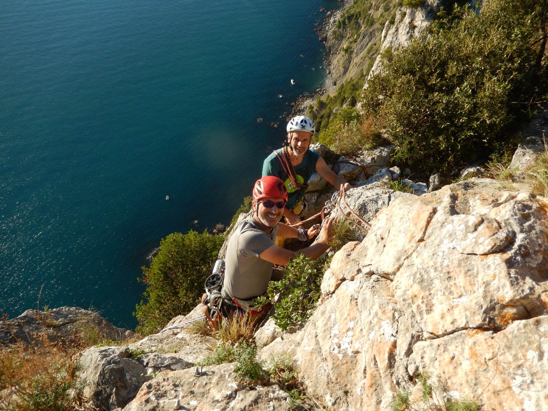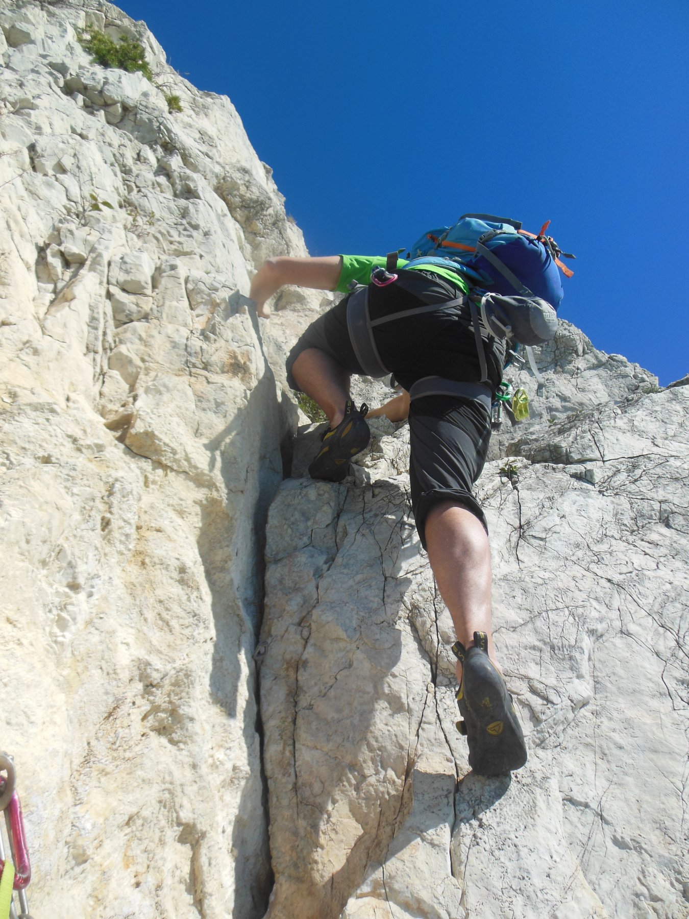 2) dalla sosta andare qualche metro a sx e salire la fessura sovrastante uscendo sulla via originale (fix inox nuovi)
