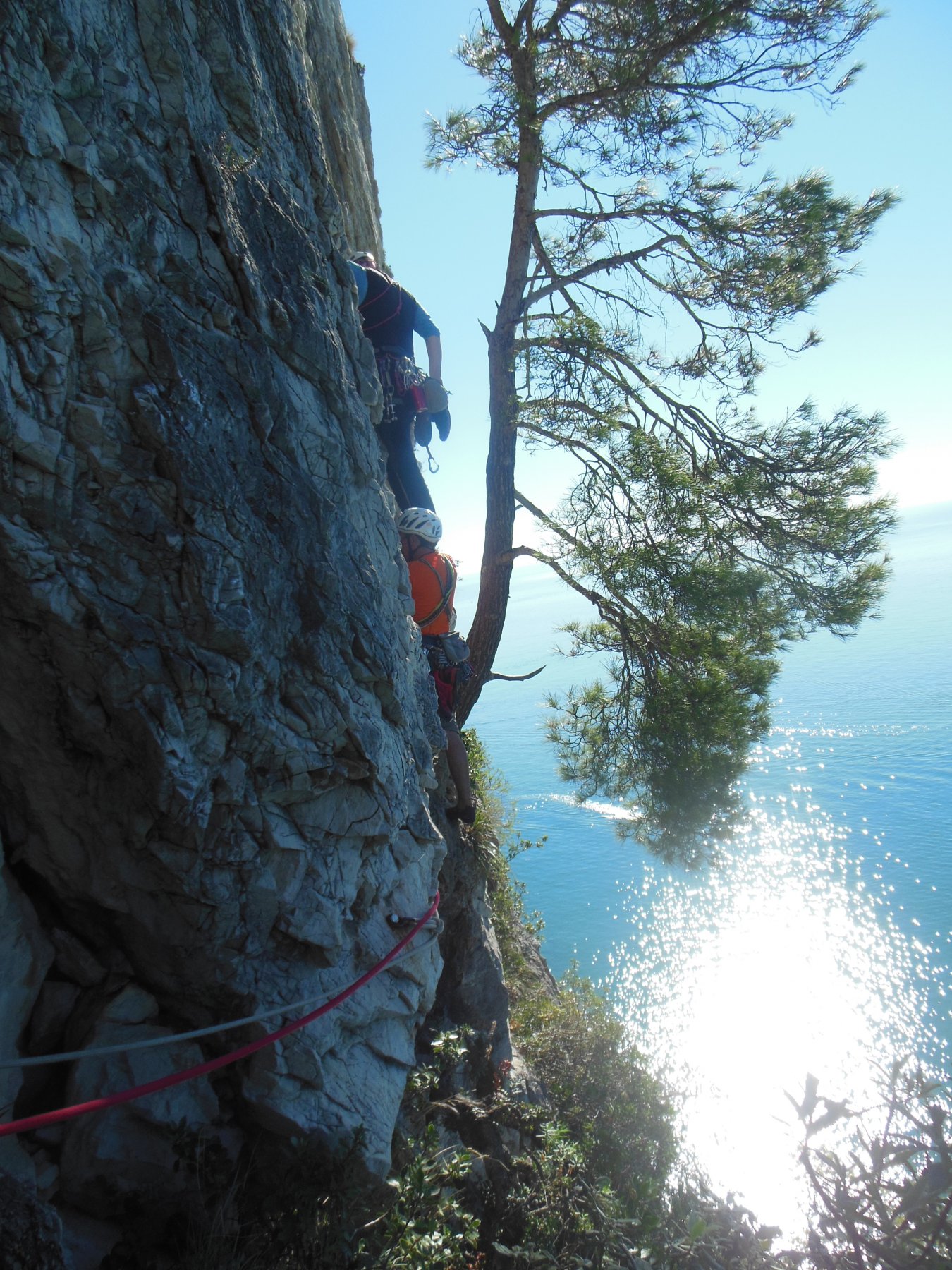 1) dalla sosta salire a dx ad un pino, e uscire su “Powa” (fix vecchi e artigianali)