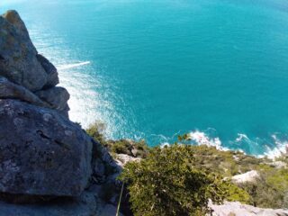 Prima volta per me al Muzzerone e tutti mi avevano consigliato questa…partiamo la mattina dal parcheggio basso dopo una breve tappa per colazione al rifugio del Muzzerone, il gestore è molto disponibile e conosce benissimo la zona e vi può dare qualche dritta. Un appunto sull’avvicinamento, seguire le corde fisse finchè finiscono, poi c’è un tratto di sentiero dal quale bisogna seguire un’altra corda fissa (e non traversare dritti, come abbiamo fatto noi) che supera un risaltino finale verticale, da cui per traverso si giunge alla fine della cengia dove è pieno di corde fisse, soste e il famoso pino che è proprio in parete, per capirci. I tiri sono belli e la chiodatura è davvero plaisir, non serve integrare…leggo su altre gite che non è possibile azzerare ma io ho azzerato alla grande praticamente su quasi tutti i tiri, probabilmente sono abituato a ben altra chiodatura…e non ho il 6a solido per capirci. La via è impossibile perderla visto che si vede sempre lo spit successivo, attenzione solo al tiro finale che è un po’ a sinistra rispetto alla S5 (comunque molto logica). Usciti dalla via veramente in un tempo veramente ottimo, che ci ha permesso di evitare il caldo pomeridiano. Discesa comodissima, noi siam tornati al rifugio dove purtroppo abbiamo aspettato un po’ per il pranzo ma per il resto ci siam trovati veramente bene…prima o poi mi piacerebbe tornare a fare qualcos’altro!