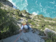 - L4: 6b+ – difficile partenza su svasi, poi breve strapiombo con passo di blocco, diedro svasato tecnico, poi strapiombino ben ammanigliato (40m, sosta di “Marinai Spit e Guai”).