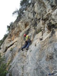 - L3: 4c, 65m, placche adagiate con brevi muretti, tiri sporchi (saltata sosta intermedia e fatta sosta su catena inox successiva (2°sosta di calata della via)