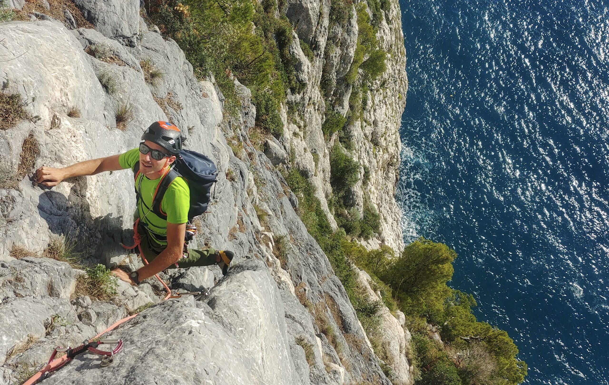 Ambiente grandioso, roccia mediocre chiodatura abbondante.