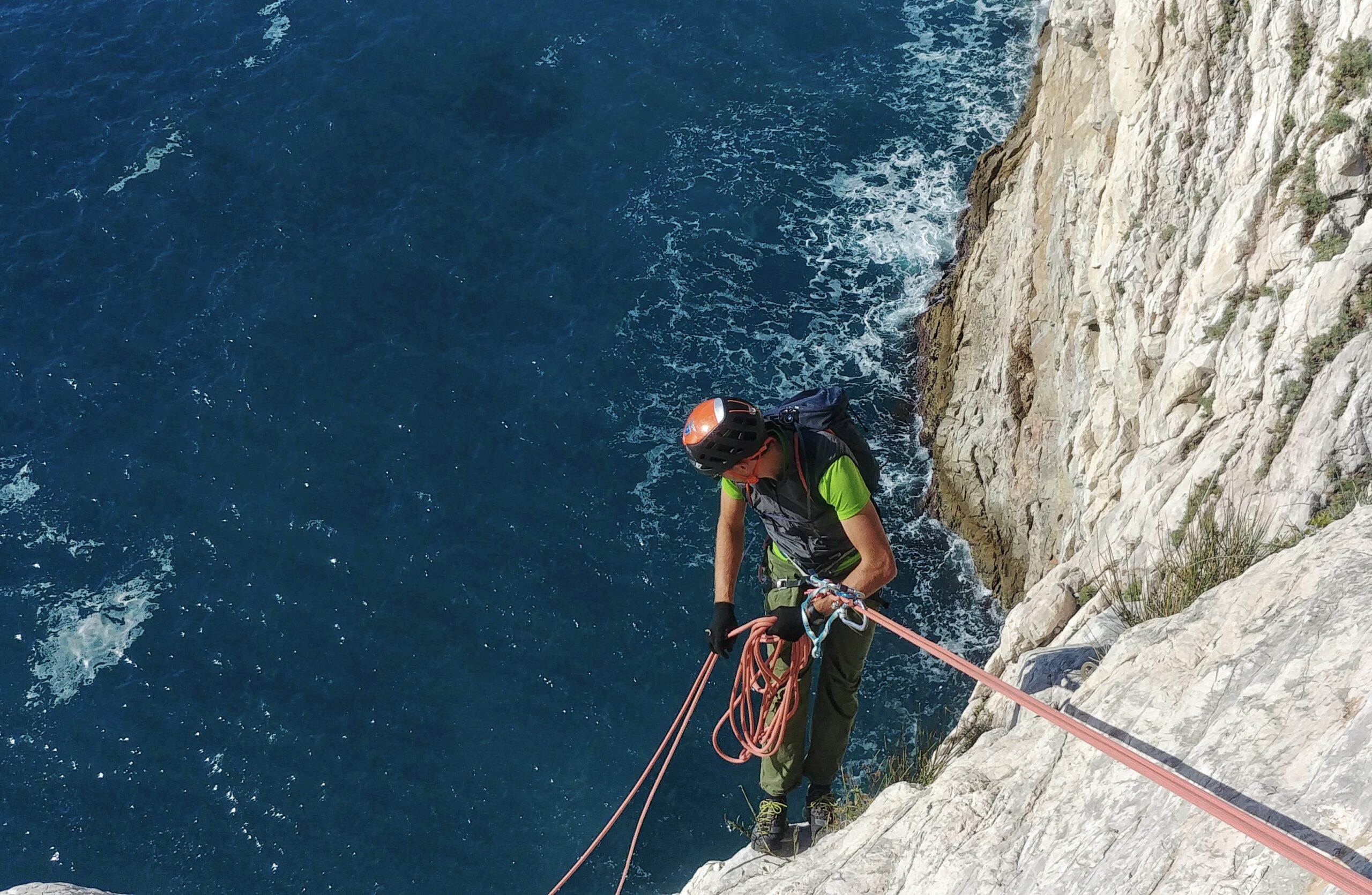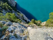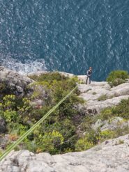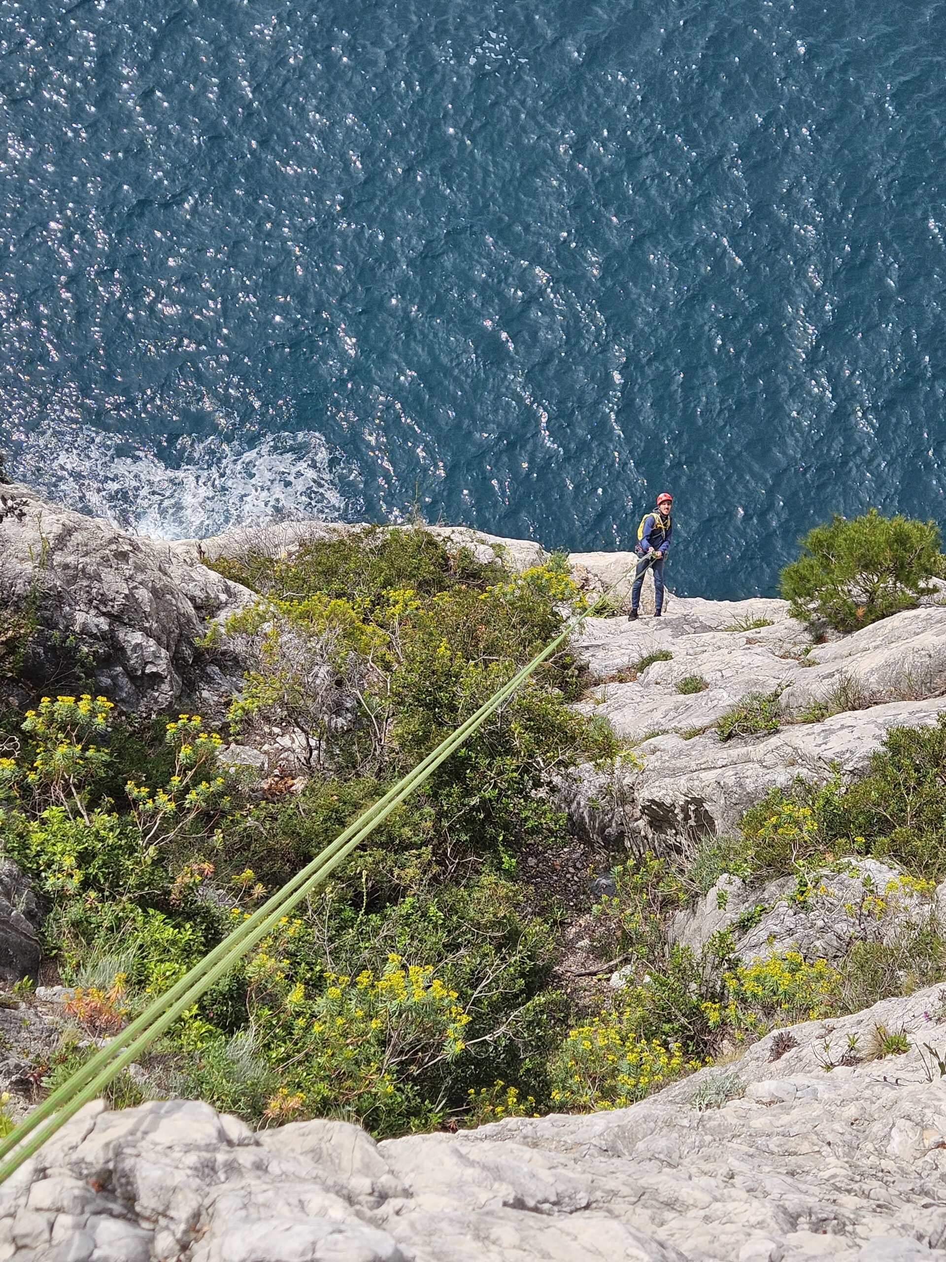 Effettuando l'ultima doppia conviene lasciare qualche rinvio dove far passare la corda per evitare che recuperandola finisca in mare.