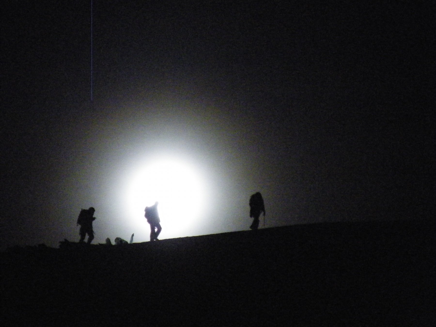 Saliti molto presto il sabato per evitare di prendere burrasca al pomeriggio che poi è puntualmente arrivata. Anche io concordo nel dire che il trattamento al rifugio è stato buono e che non e da meno di altri rifugi in Svizzera. Partiti col primo gruppo con la luna ancora alta ed effettuata la salita sino a metà cresta con la frontale. Superate alcune cordate prima del colle seguimo l’unica rimasta davanti a noi che si ferma dopo poco . Da li in poi a rifare la traccia su 10 /15 cm di neve farinosa caduta la sera prima.