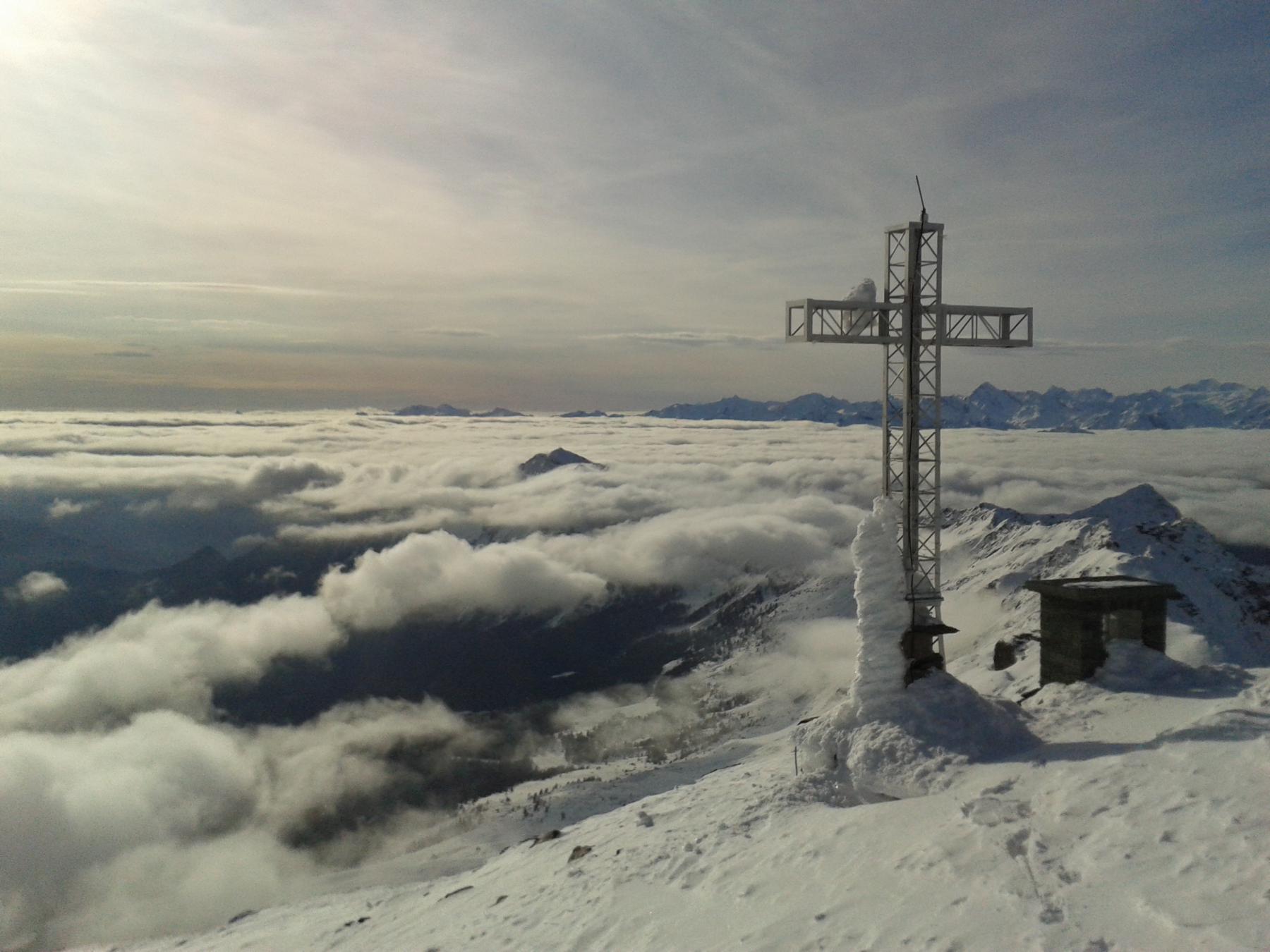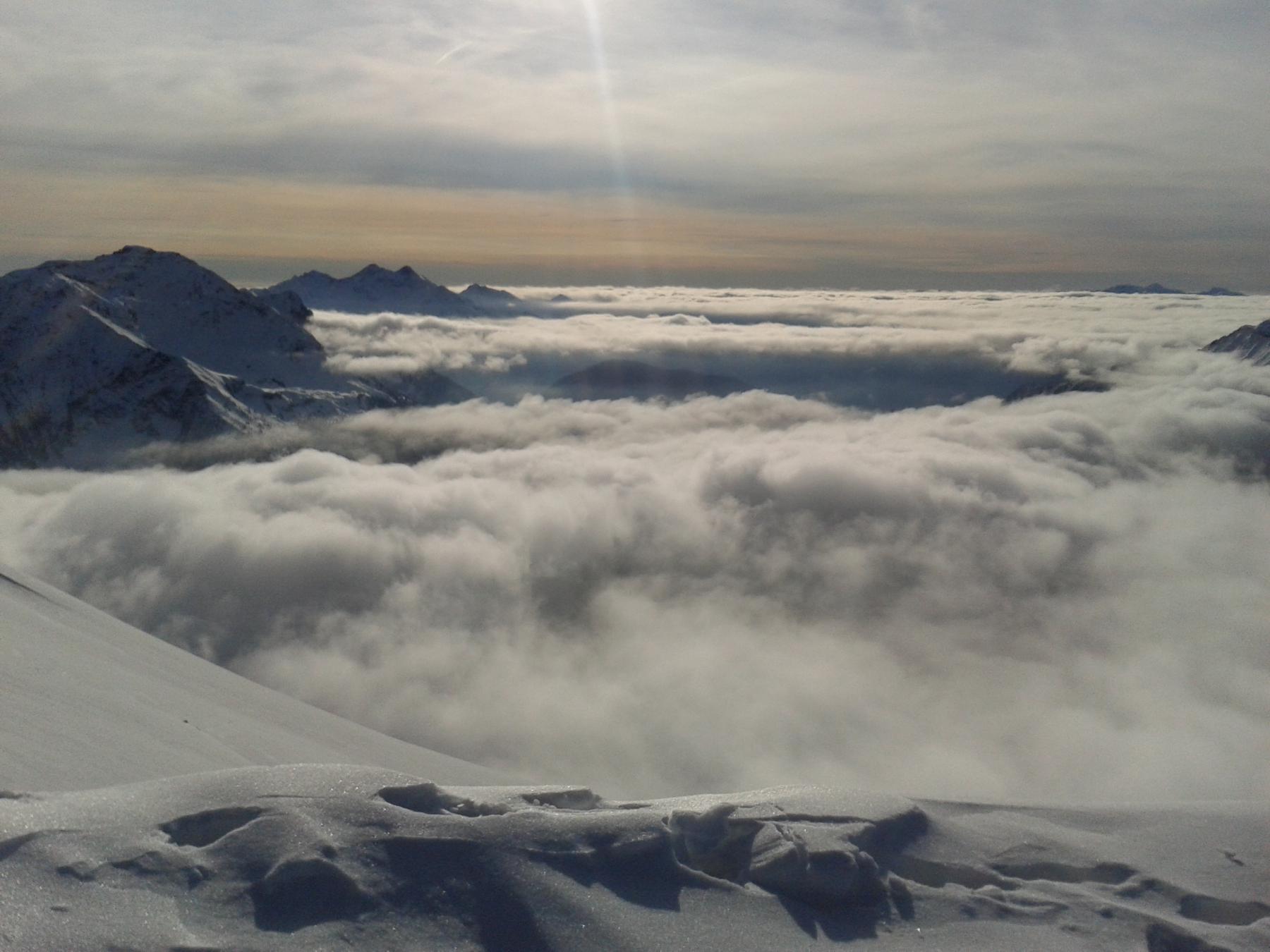 In basso neve dura, in alto mix di crosta e farina riportata dal vento.