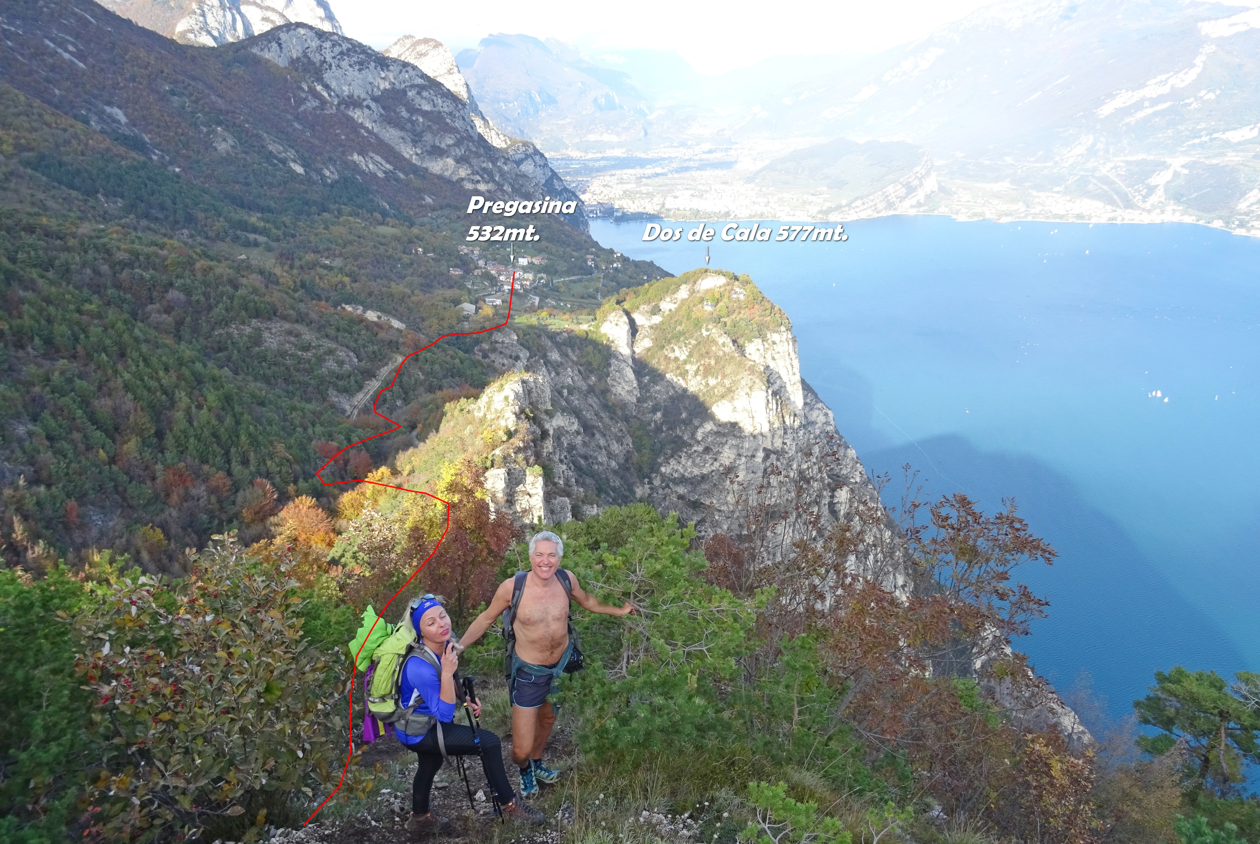 Dalla piccola località di Pregasina (TN), saliamo lungo il segnavia 422 e 429 sino a raggiungere la Bocca da Lè. Da qui si segue il sentiero 430 salendo nel bosco che pian piano si diraderà lasciando spazio alle prime creste panoramiche. Si arriva alla deviazione EE alpinistica (segnalata), che presenta alcuni e brevi passaggi d’arrampicata di I° grado, non eccessivamente difficili, ma abbastanza esposti, il passaggio può essere completamente aggirato proseguendo sul sentiero di sinistra. Si continua poi salendo sino alla Cima Strussia 1238mt. e successivamente alla piccola croce di Cima Bal 1259mt. ,bella la vista sulla Valle di Ledro e l’omonimo lago. Da qui, il sentiero continua nuovamente lungo la visibile cresta in direzione sud,sud-ovest tra boschi e roccette portandosi verso una quota anonima affrontando