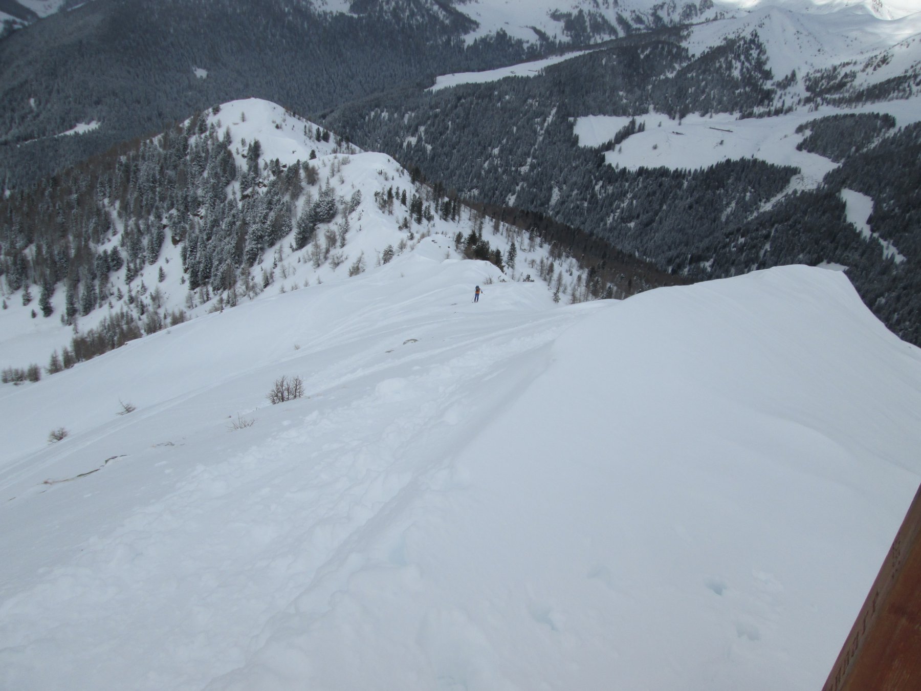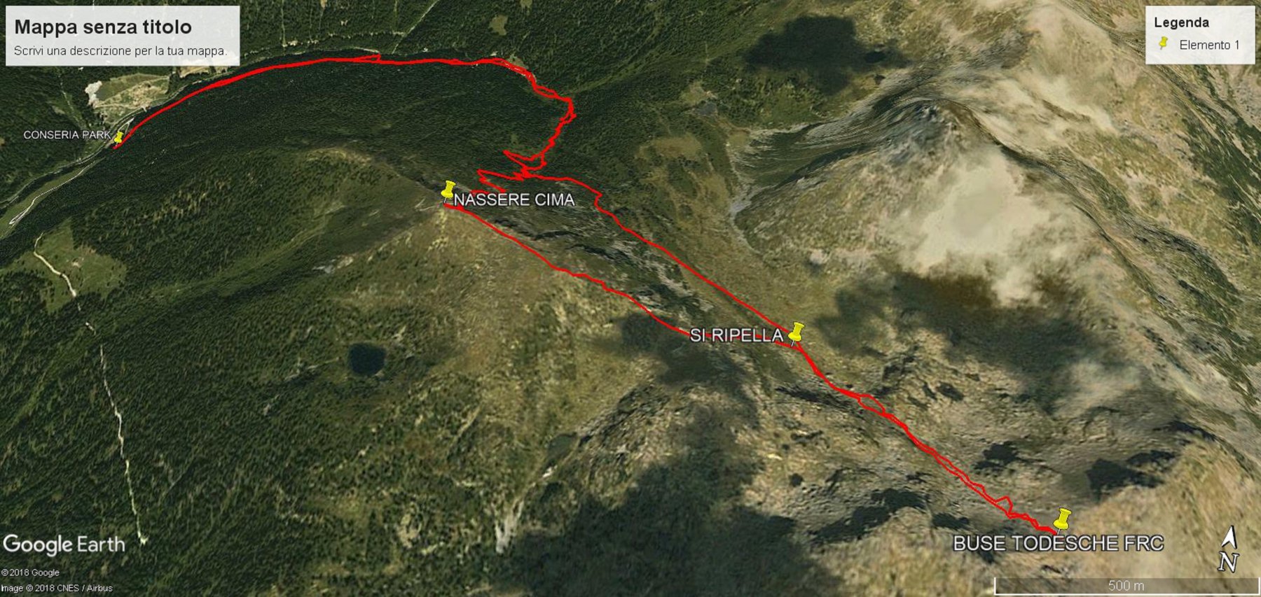 Dal primo slargo sulla dx dopo il rifugio salire verso la Malga ben visibile. Risalire il canalone alle spalle della stessa seguendo il sentiero che sale ripido fino allo slargo di Malga Nasere. Proseguire per dorsale alla sinistra della malga oppure verso destra per il canalone. Nel primo caso si raggiunge l’antecima, nel secondo si va direttamente alla meta. In discesa è possibile scendere la carrareccia che con lunghi diagonali conduce al Ponte Conseria. Possibili tagli a piacere per il bosco.
