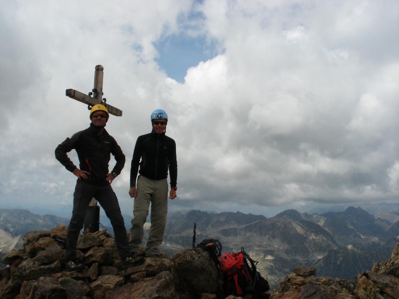 Oggi gran bella gita assieme all’amico Luciano partendo anche con una bella giornata e come da itinerario,siamo arrivati al Rifugio Remondino e poi a dx tra pietraie,placconate e dei nevai che nn danno problema raggiungendo il Lago di Nasta coperto di neve e ghiaccio con favolosi riflessi azzurini.Da qui abbiamo puntato al canalone sud e lungo le placconate di dx cercandoci i passaggi piu’ divertenti,lo abbiamo risalito raggiungendo le due Cime di Nasta(m.3108).Ora con un po’ di vento fresco da S/W e qualche nube che nn disturbava,siamo scesi al Colle della Forchetta e da li a continuare per la divertente cresta con qualche breve contornamento su cenge e per un tratto piu’ tecnico(PD+),a scendere al Colle della Culatta e sempre per la divertente cresta ad arrivare anche in Cima al Baus(m.3072)dove c’erano due ragazzi di Sanremo che saluto. Con sempre vento fresco in cresta e qualche nube in piu’,abbiamo pranzato sulla stupenda cima e dopo un’oretta si riparte,scendendo al Colle della Culatta e da li tra pietraie e sfruttando i nevai di sx contro la parete del Bastione,non siamo ripassati dal Lago e dal Rifugio per poi andare a sx e lasciati i segni per il Colle di Brocan,a scendere direttamente nel vallone tra pietraie e nevai subito e poi giu’ alla meglio tra salti rocciosi,cenge erbose e pietrame con di tanto in tanto qualche raro ometto,fino al sentiero che porta al Colle di Mercantour e per questo a scendere fino al sentiero per il Remondino e per questo all’auto terminando al meglio la stupenda e divertente gita tra ambienti selvaggissimi,specie la discesa.Un saluto anche ai tre che salvano alla Nasta dalla normale e buone gite a tutti!
