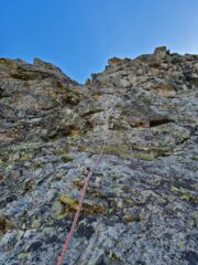 Abbiamo scoperto una via bellissima, su roccia ottima, molto poco chiodata ma ben integrabile e con grande soddisfazione siamo riusciti a trovare la linea dall’inizio alla fine.