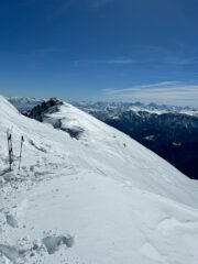 Di ritorno dal Cugulet saliamo al Nebin SE su neve ben portante ma rinvenuta tale da non richiedere più i rampant. Poi traversiamo alla cima NO. Discesa da lacrime su firn spettacolo nonostante mezzogiorno appena passato ma garantito dal buon rigelo del mattino stando tutto a destra vaccia a valle fino on fondo al cumbal per poi rientrare in ultimo su Cucchiales.