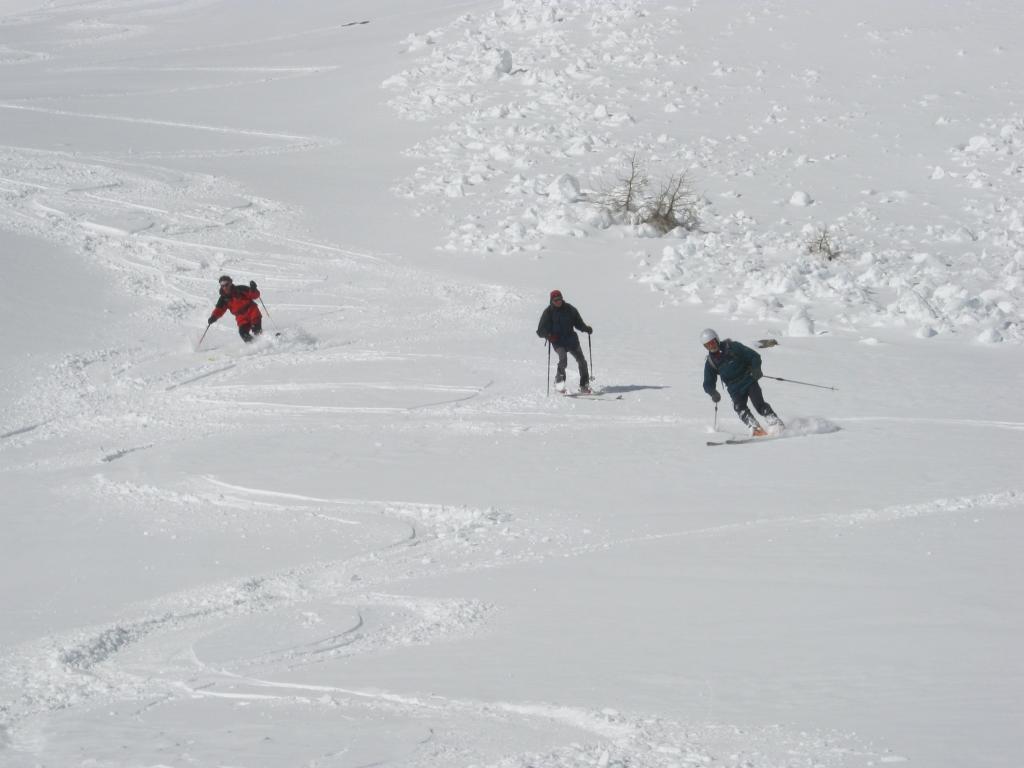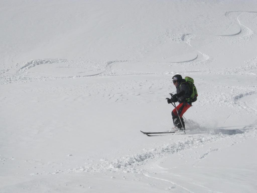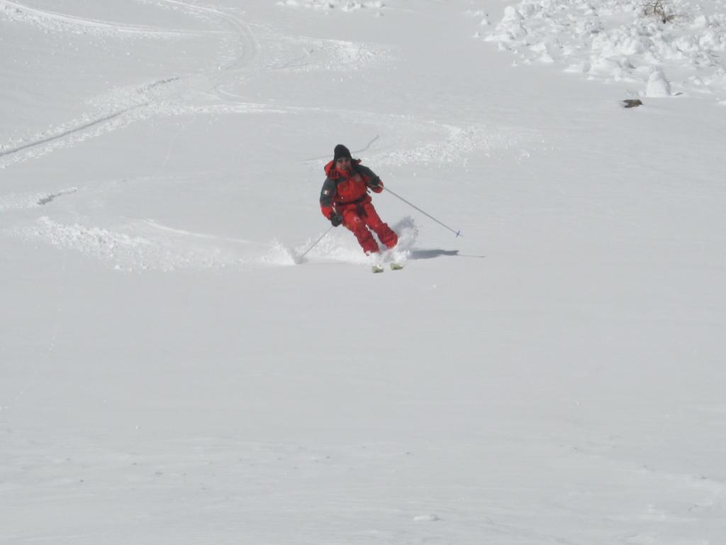 siamo partiti da podio sottano mettendo subito gli sci (sulla strada ci sono 20 cm di neve); nella parte alta abbiamo trovato crosta portante con tratti di neve pressata da vento; dal canale fino al bosco neve pressata al sole e neve riportata dal vento all’ombra. poi all’altezza del bosco siamo scesi sulla sx su neve primaverile (poca neve, ma molti erbusti). Infine da neirassa fino alla macchina rientro veloce sulla strada con crosta portante.