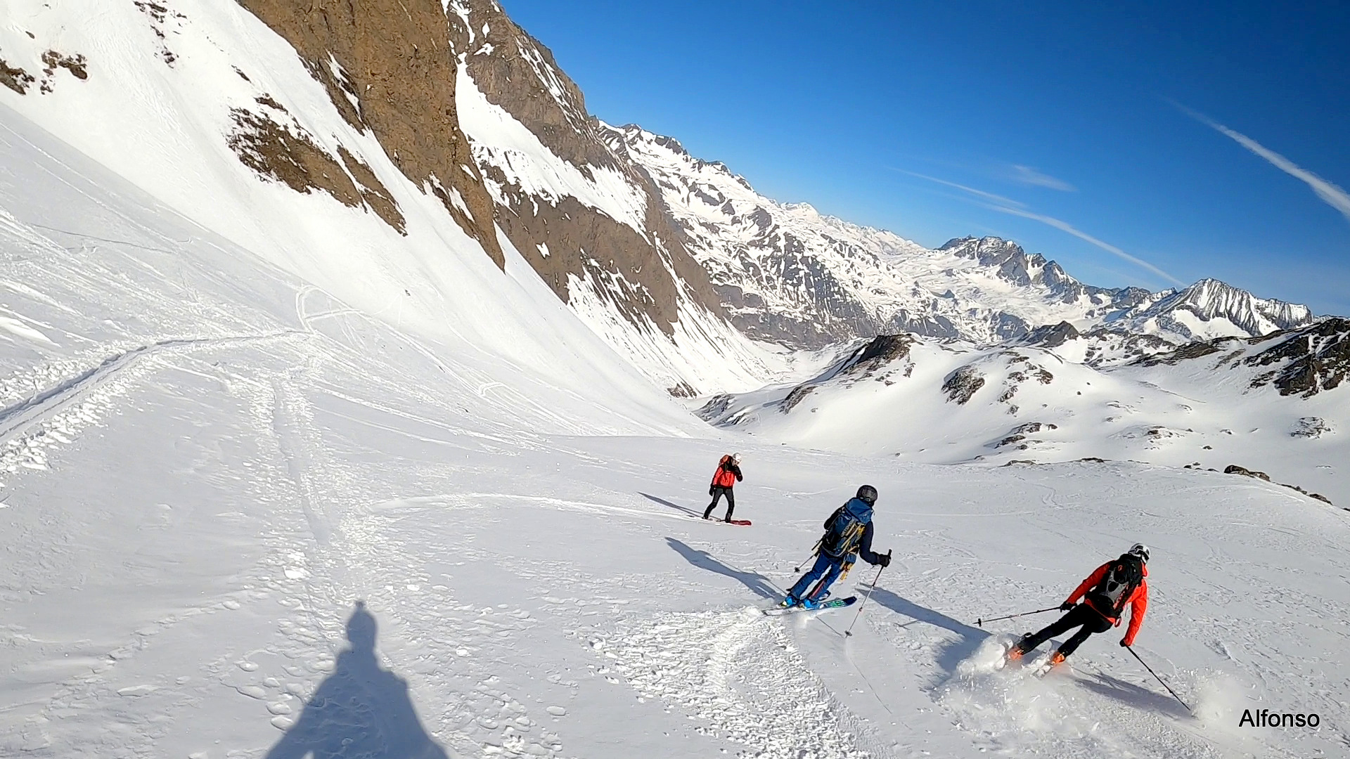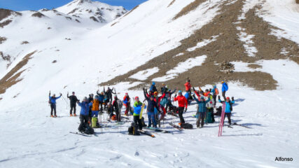 Val Formazza 2022, 3° dei TreGiorni per 28 G.a.s.a.t.i. Cai Chivasso. Saliti in seggiovia, sulla strada per il Margaroli si tolgono gli sci più volte. Salita al passo su neve crostosa e segnata da numerosi passaggi, poi discesa verso Riale con sorpresa di bella farina alternata a tratti farinosi compatti; uno sballo fino al traverso. Siamo scesi diretti sulla diga e poi sulle piste da fondo fino al pullman