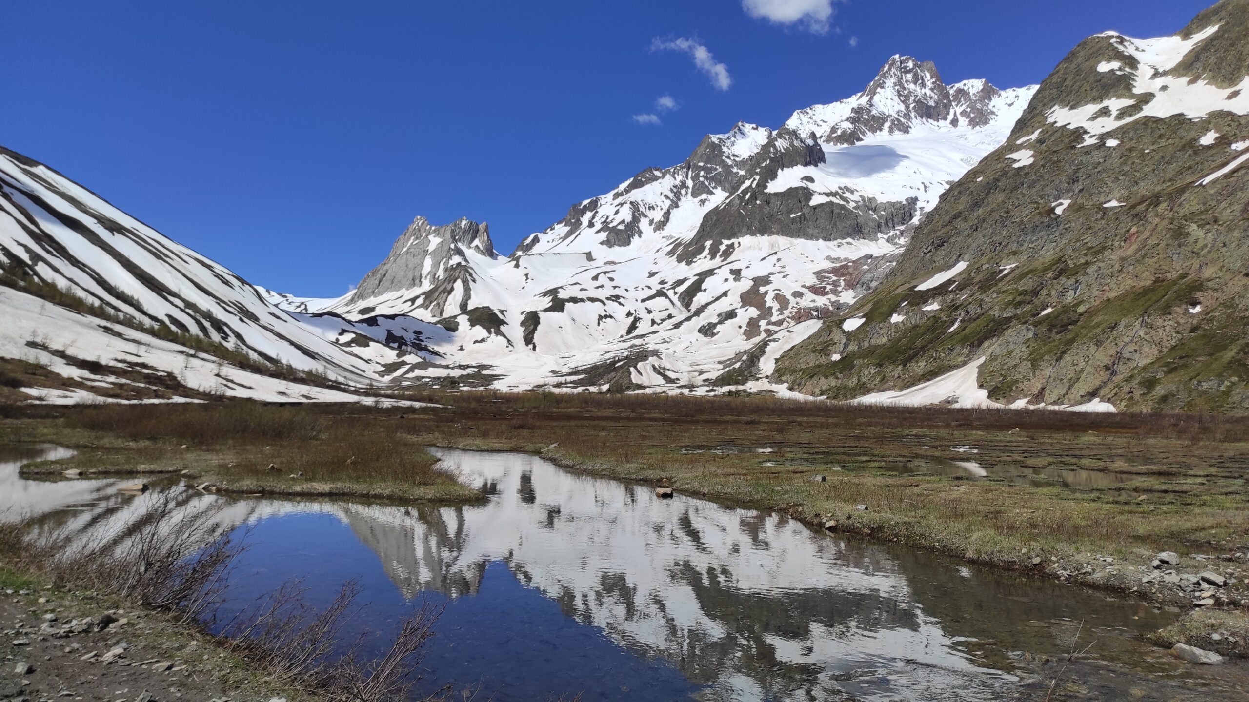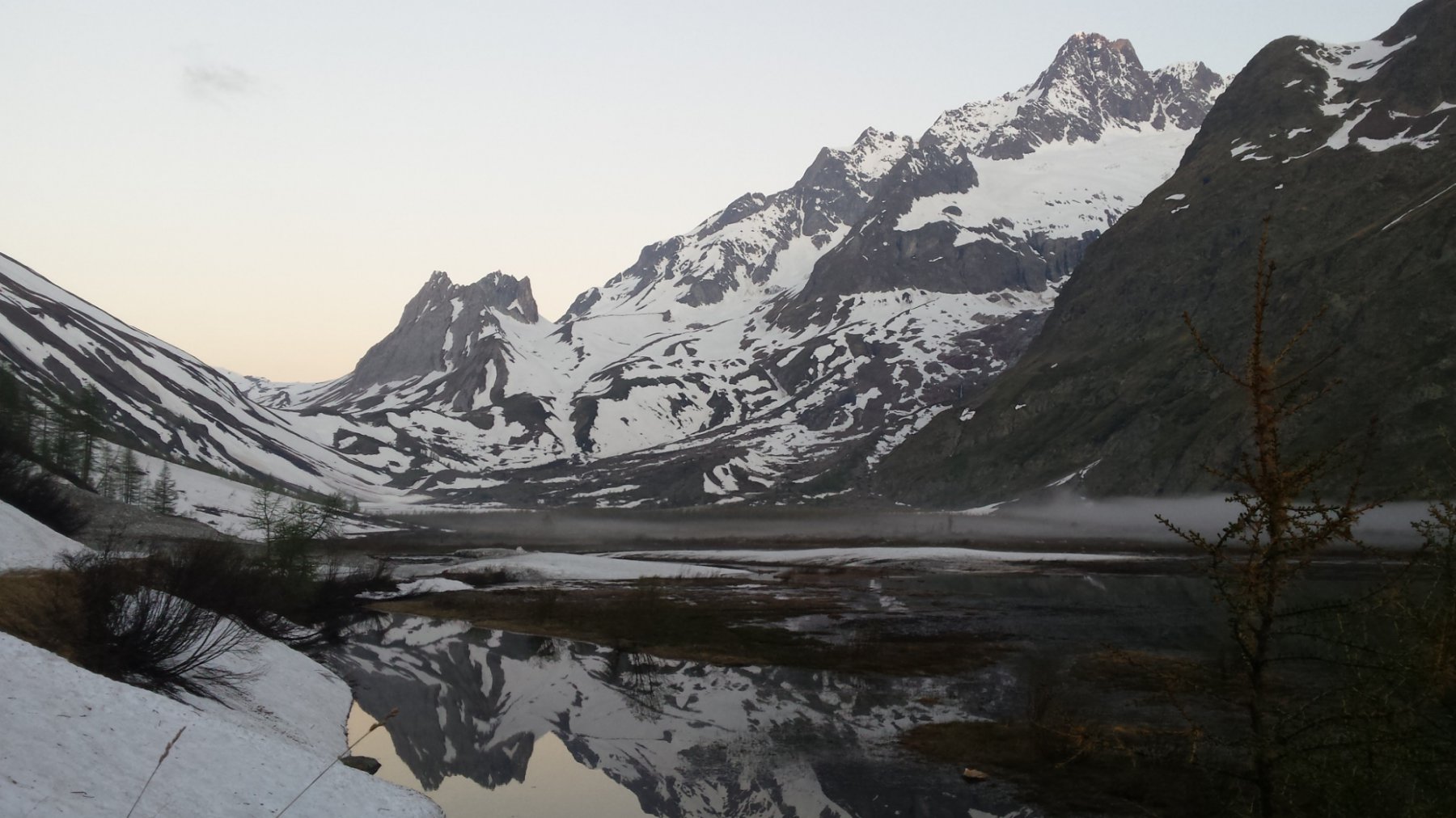 Da La Visaille (1670 m) seguire l’itinerario che porta al rifugio Elisabetta (2195 m) quindi salire costeggiando le Pyramides Calcaires sulla destra (verso di salita) fino a un colletto a quota 2600 m circa.