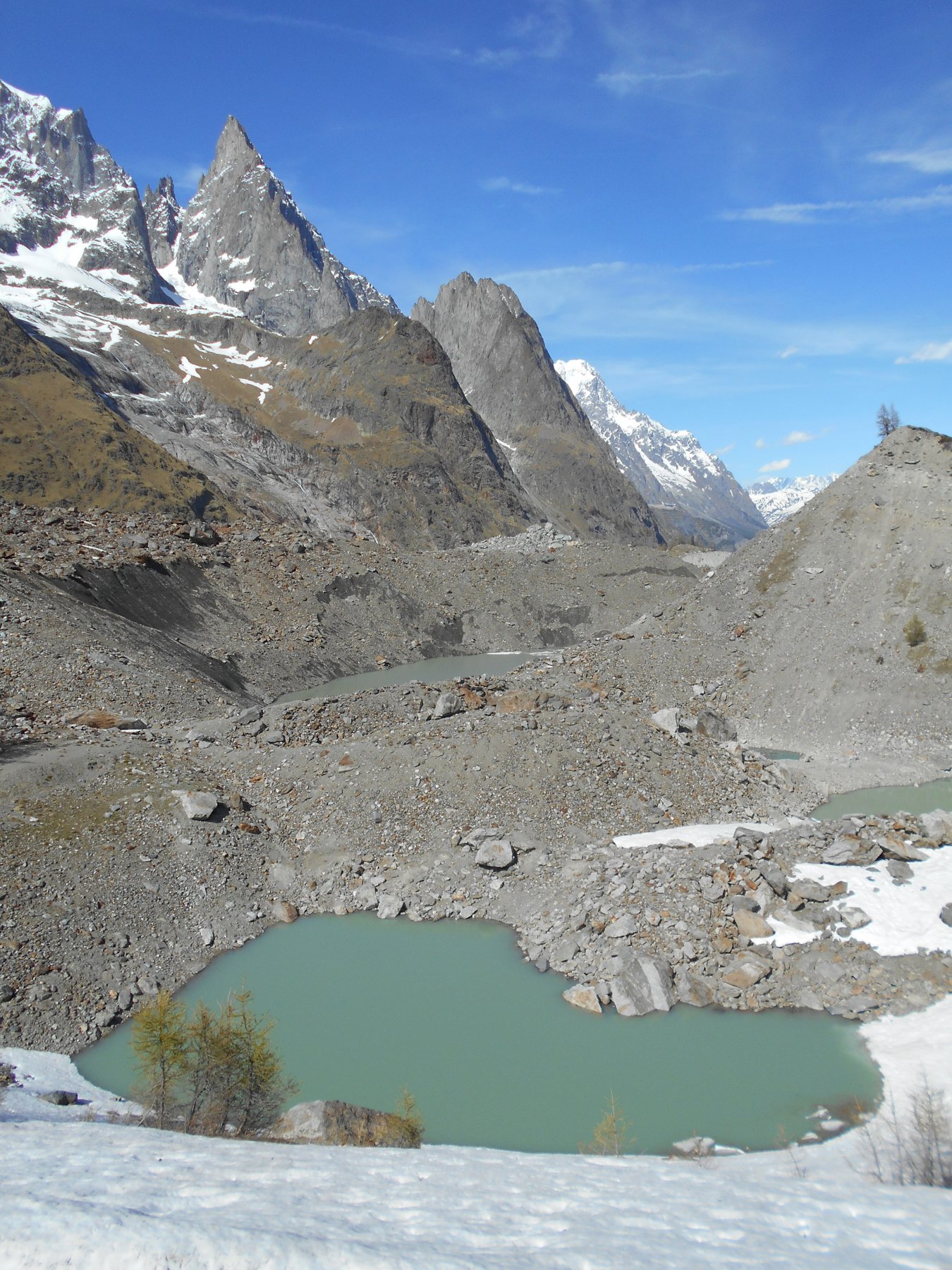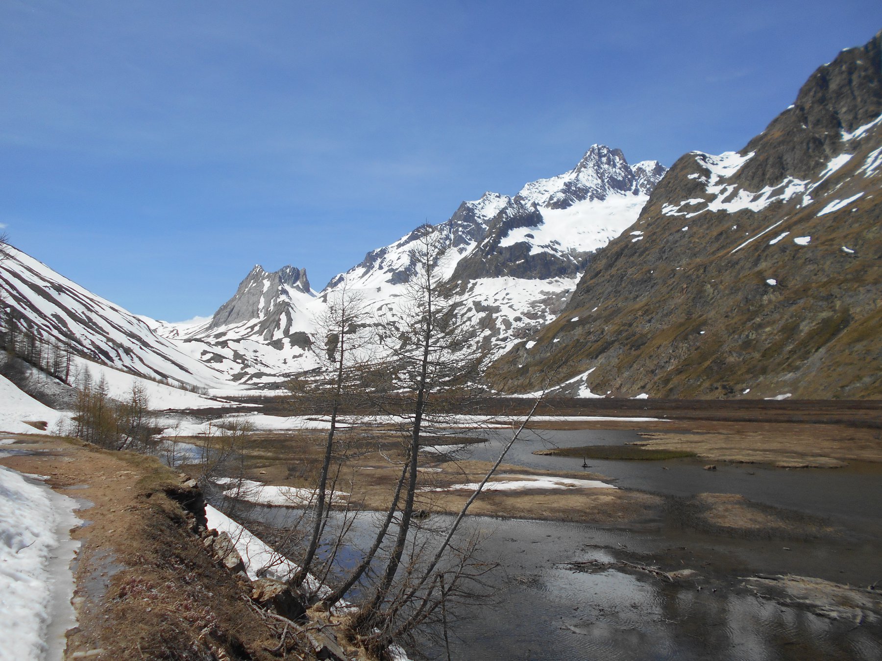 Da La Visaille (1670 m) seguire l’itinerario che porta al rifugio Elisabetta (2195 mt.) quindi salire costeggiando le Pyramides Calcaires sulla destra (verso di salita) fino a un colletto a quota 2600 m circa.