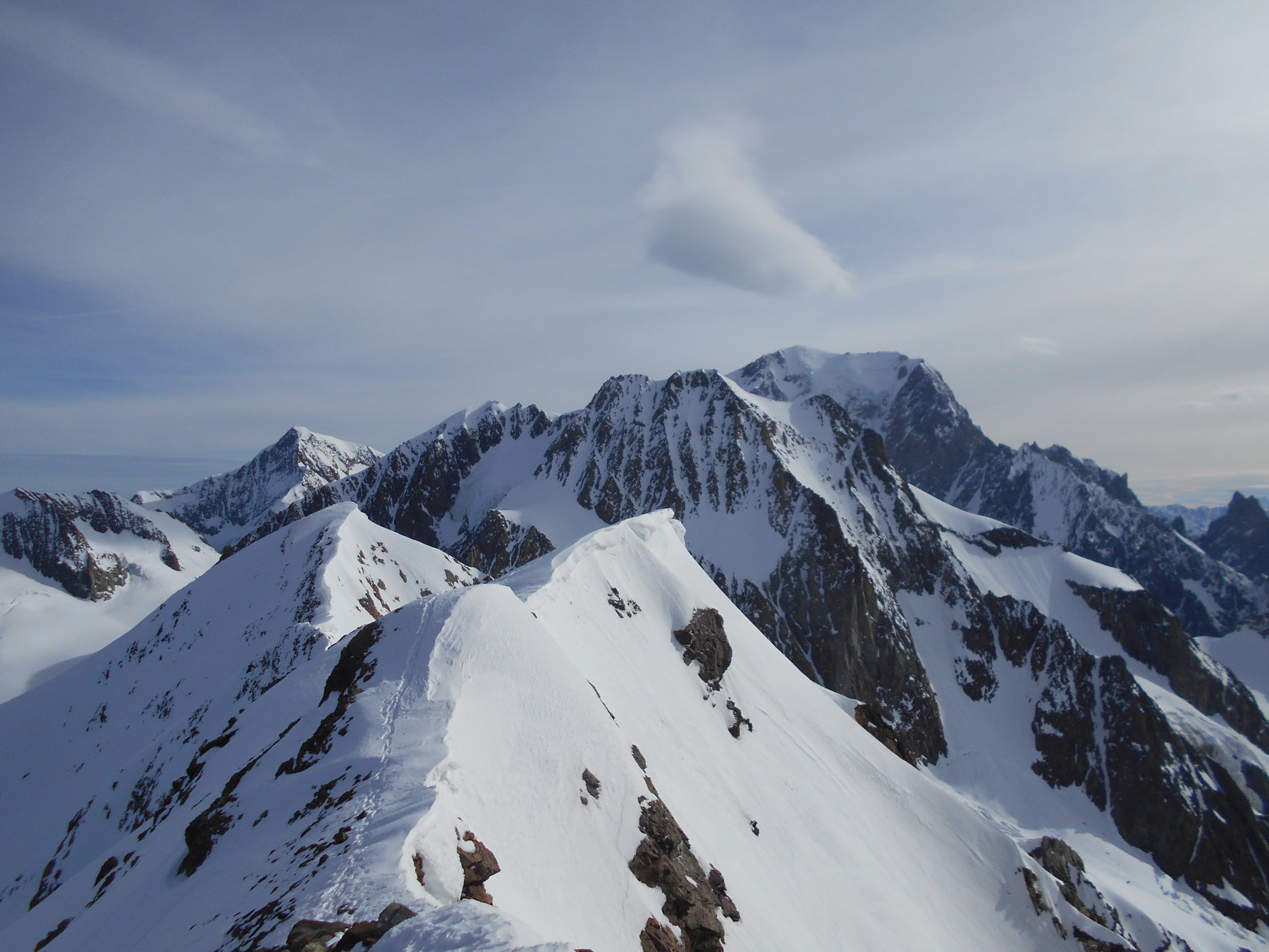 Dal Dome è possibile salire ancora senza difficoltà fino alla spalla dell’Aiguille des Glaciers (m 3706), posta immediatamente a sinistra della parete rocciosa sommitale.
