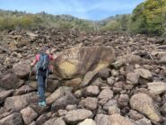 Dal park salire ultimo tratto di asfalto fino all’inizio sentiero davanti ad una casa. Poco oltre, seguire il sentiero verso dx ed in breve si è sulla pietraia. Iniziare a risalirla su lievi pendenze per lungo tratto, utili i bastoncini, incontrando qualche ometto e le scritte in vernice bianca. Oltre la metà del percorso la pendenza aumenta sensibilmente e può essere necessario l’appoggio delle mani sui blocchi di roccia molto ruvida e tagliente con spettacolari concrezioni e conformazioni. Nella zona terminale, andare un po’ a dx verso un canalino con ometti e nastro da cantiere per poi traversare a sx e riprendere l’ultimo tratto che porta in cresta, da li, a sx in pochi minuti alla cima col caratteristico rifugetto in miniatura. La discesa può essere effettuata sulla stessa via con attenzione oppure dalla Costa Carminera che inizia al grande ometto visibile a poca distanza dalla cima verso Varisella. Questa costa è molto impervia nella prima metà per via di roccette, saltini ed arbusti invadenti fino al palo con bandiera e scarna croce adiacente, relazionata su questo sito come “Dorsale SE”.