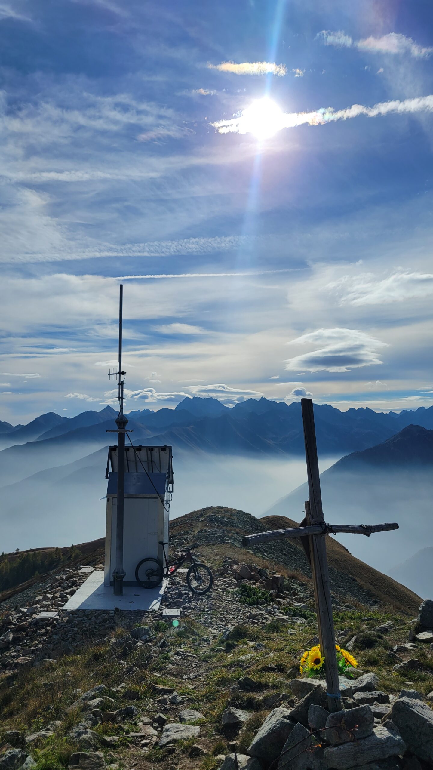 Fatta la salita sino al Colle di Neirassa, la prima parte su asfalto con pendenze notevoli che poi migliorano man mano che si sale, con la parte sterrata più rilassante ed in ambiente aperto. Dal colle sono salito al monte Autes su bella sterrata ancora in buone condizioni, con l’ultima breve parte a spinta su di un tratto pietroso ma senza difficoltà. Dalla cima si gode di un’ampio panorama su tutta la valle Stura. Ridisceso al Colle ho fatto la bella discesa verso Sanbuco; Il traverso in frana va fatto con attenzione, io con bici al fianco, ma non presenta particolare difficoltà.