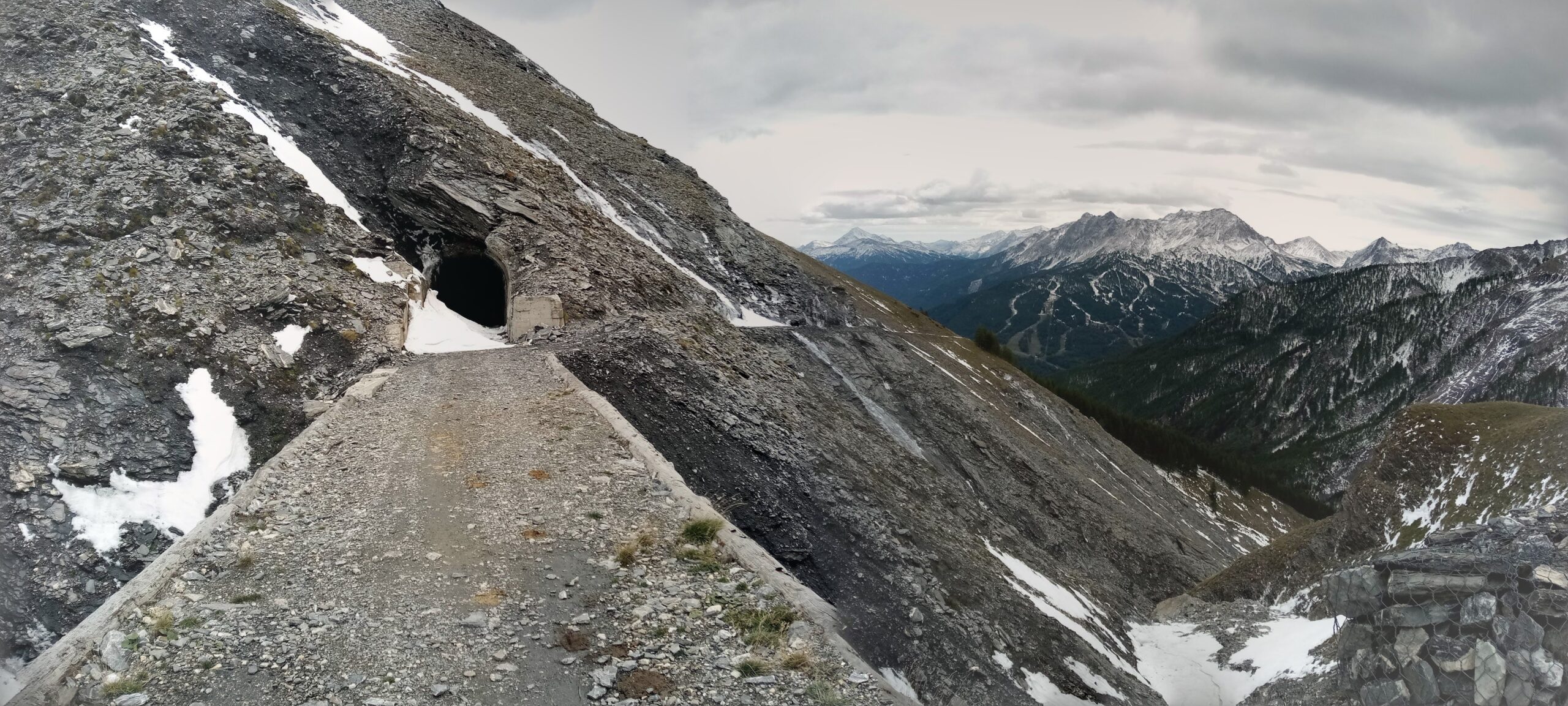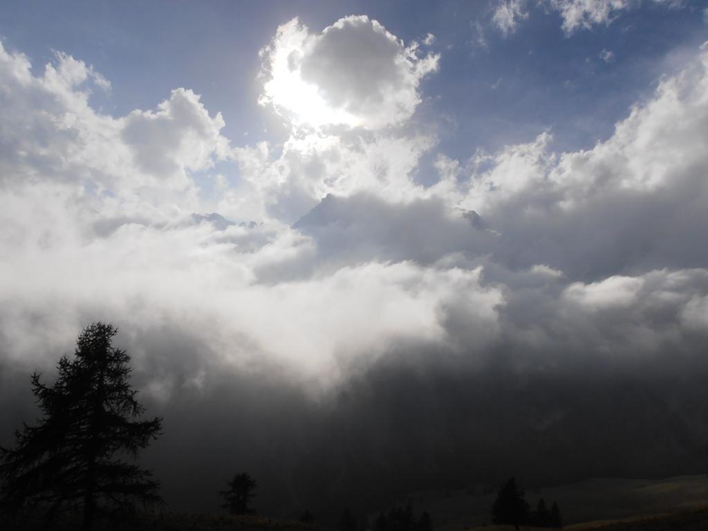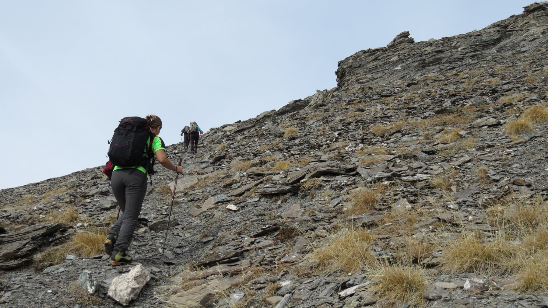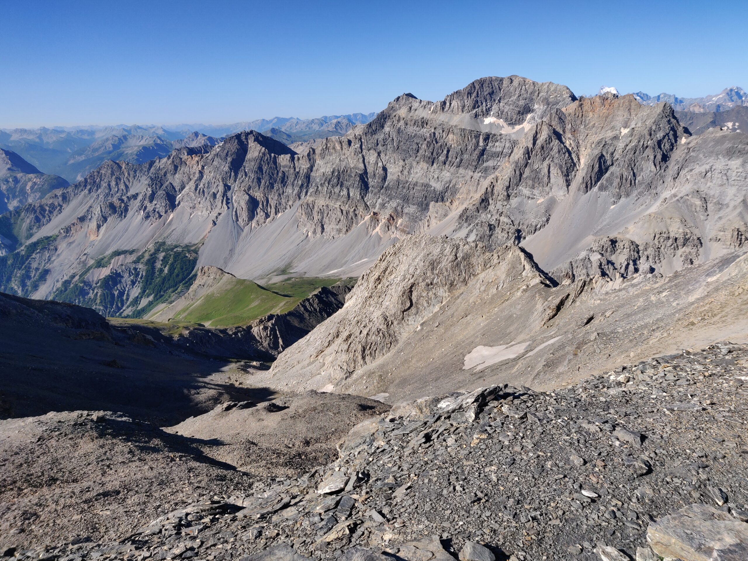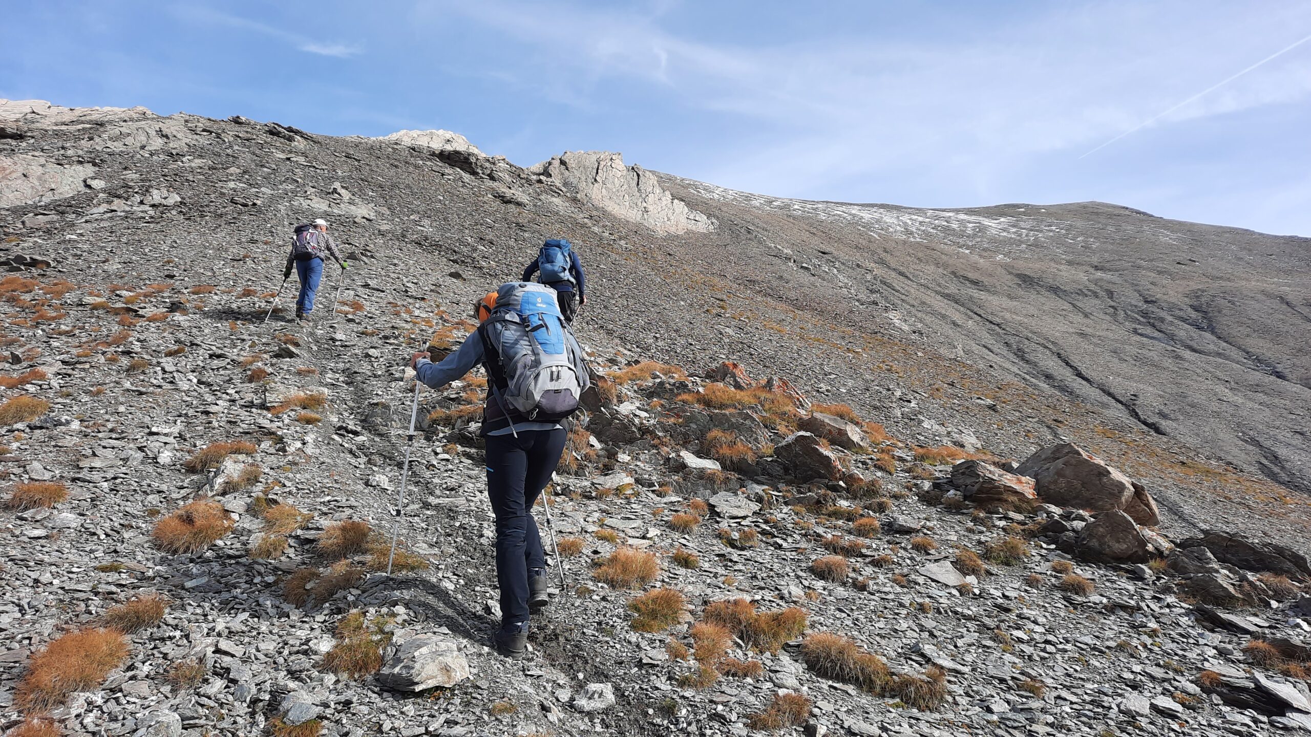 Si attraversa quindi il Piano dei Morti in direzione del Colle della Rho, ; Si incontra una palina – dopo circa 50 metri si volge a dx su una traccia che scavalca la dorsale sotto il Roc de Jany, continua per un tratto parallela alla cresta S-O, spostandosi poi sul versante che risale a strette svolte in direzione della lieve depressione fra la q. 3047 m e la Punta Nera.