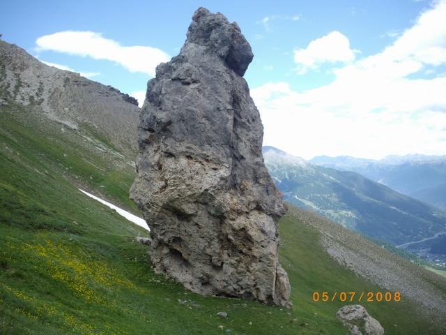 Intorno a quota 1900 si incontra (gia visibile dalla strada ) un sentiero man mano + marcato che sbuca alle grange proprio in corrispondenza della fontana con i cartelli