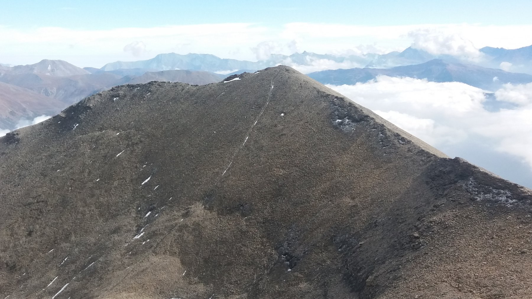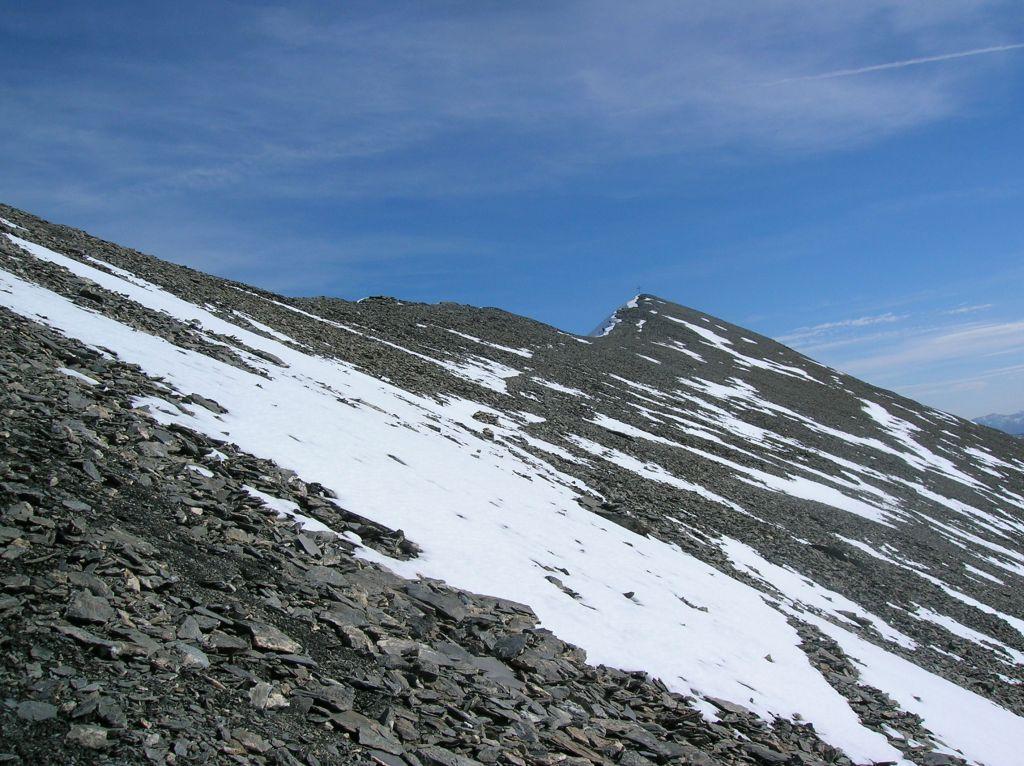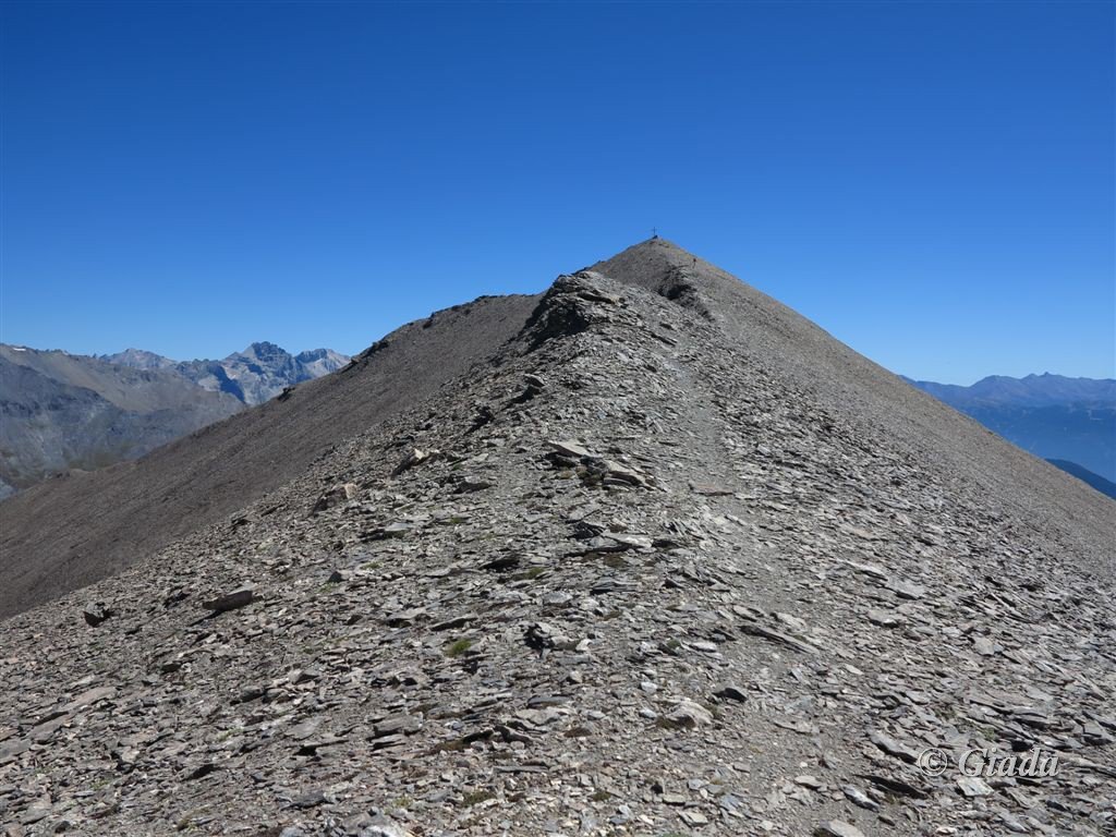 Volgendo a dx si tocca in breve la Punta Nera (croce di vetta); piegando invece a sx si raggiunge la q. 3047 m (segnale dell’IGN).
