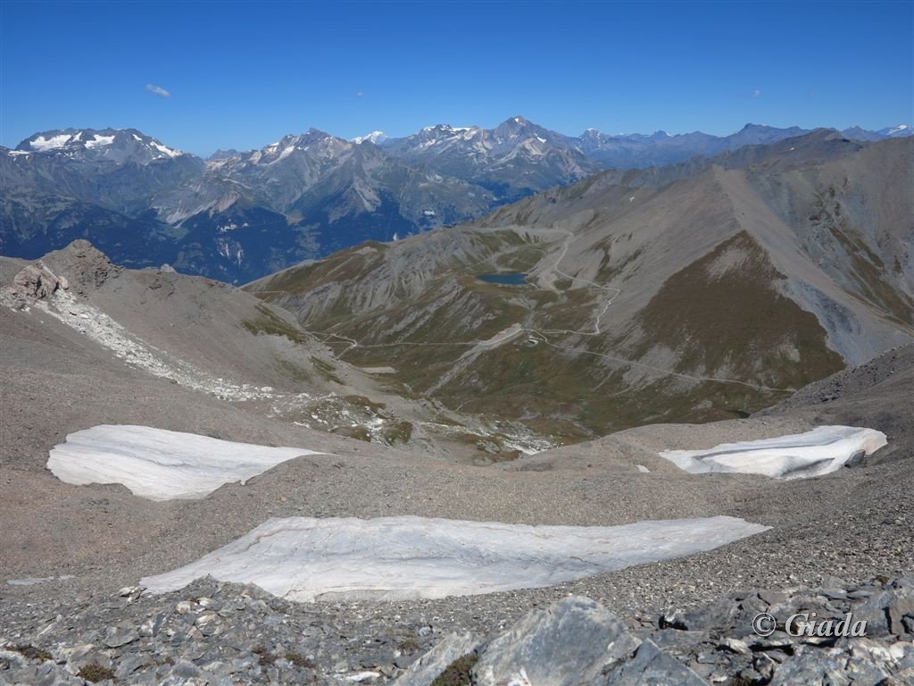 Discesa per l’itinerario di salita, oppure direttamente nel vallone sottostante la Grand Argentiere, per poi risalire brevemente al Colle della Rho e ricongiungersi all’itinerario di salita dal versante italiano del colle.