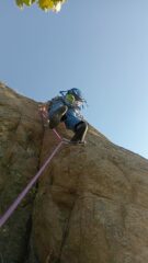 Terza volta su questa breve ma bellissima via.. primi due tiri con chiodatura parsimoniosa….. poi ravvicinata sui tiri finali partiti presto per evitare il caldo.