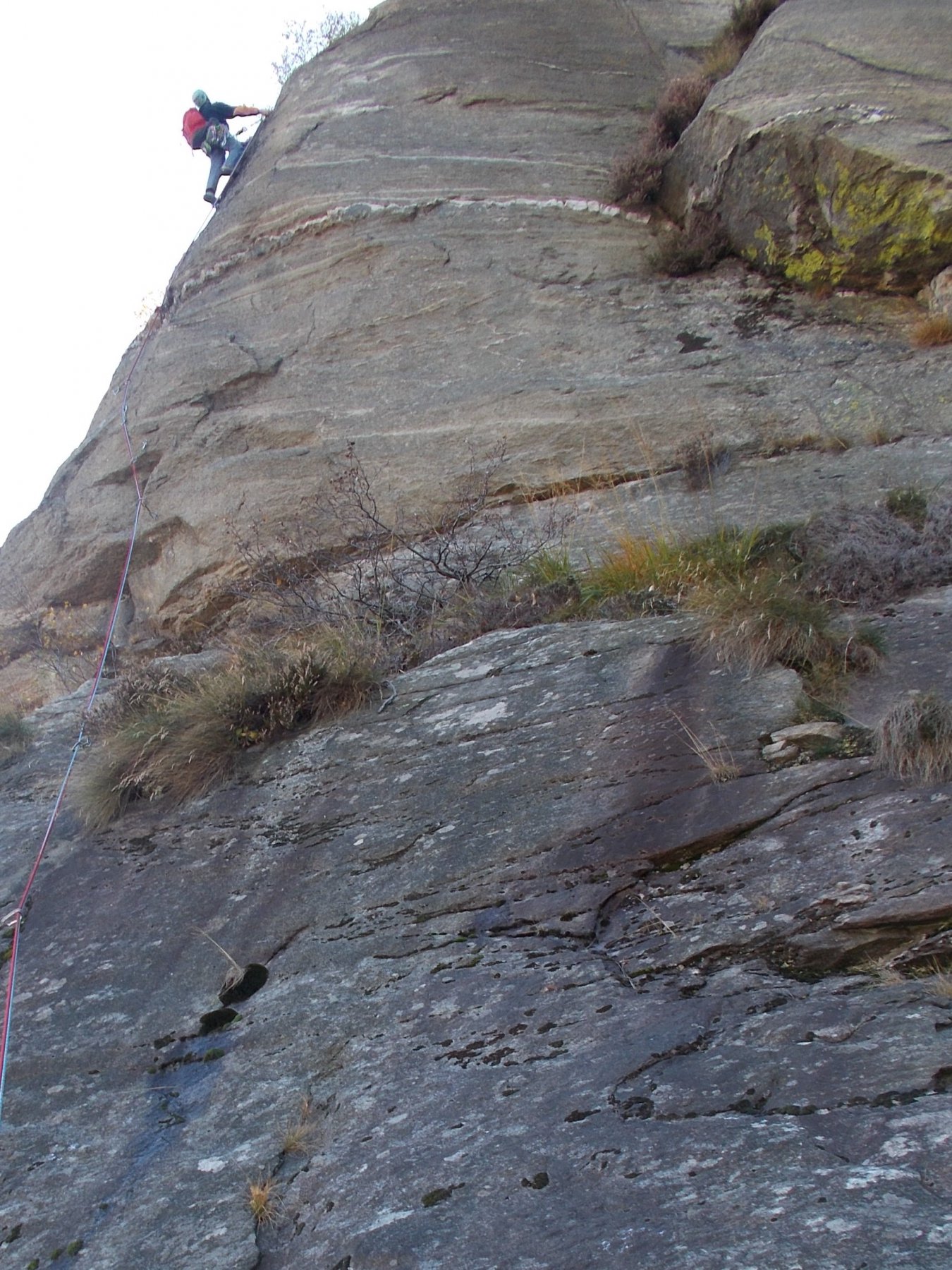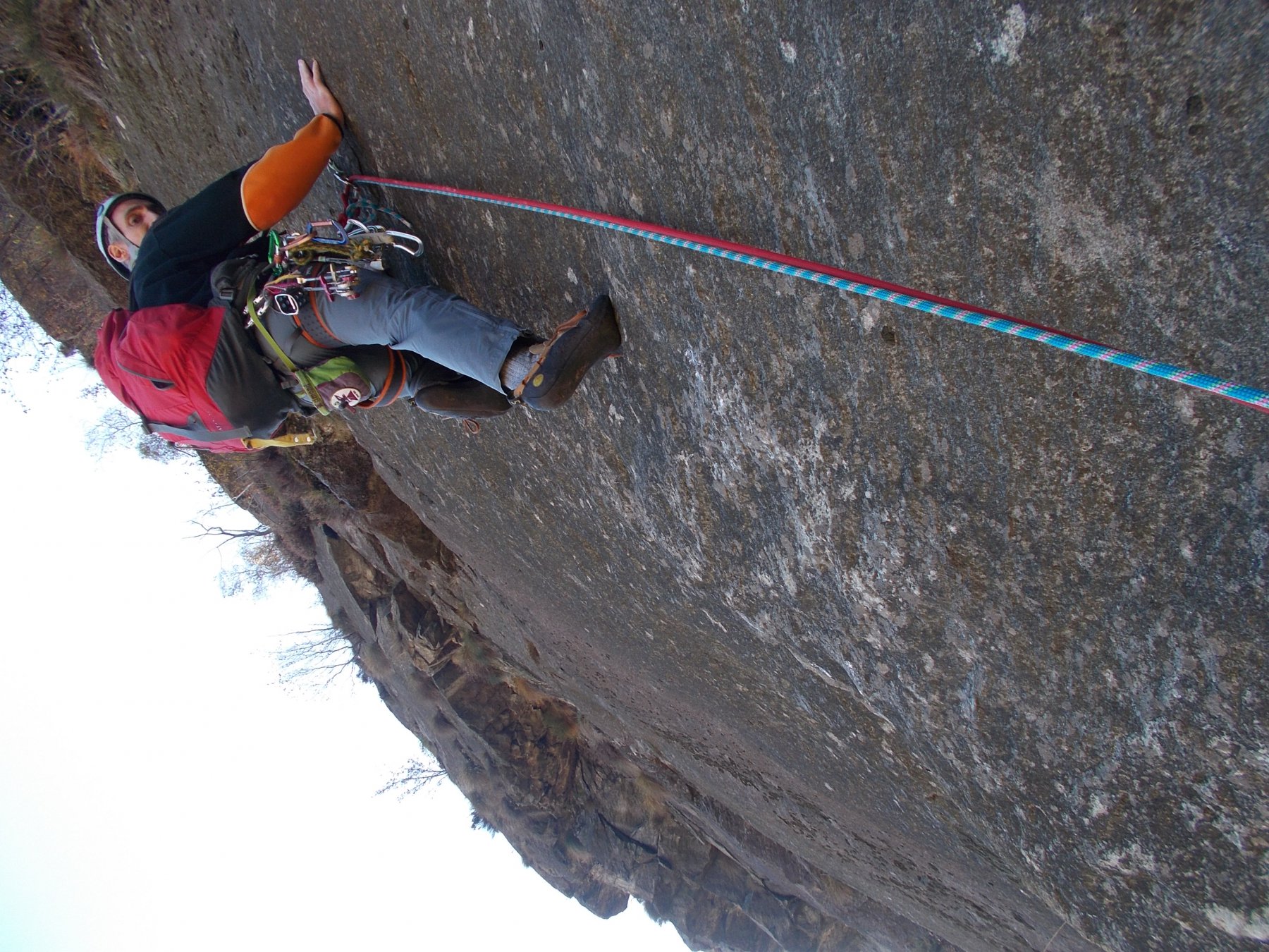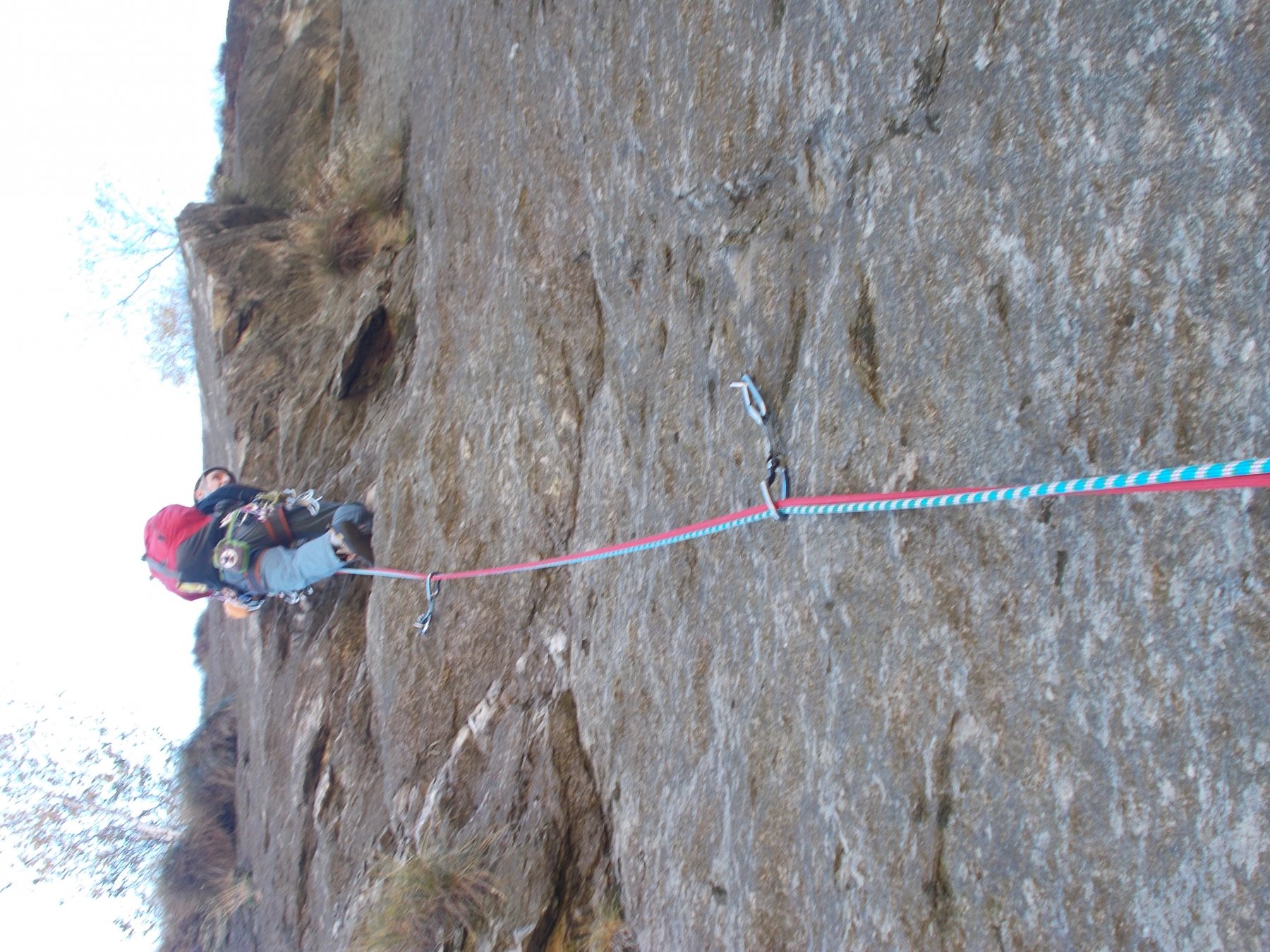 bella e impegnativa via, proprio quelle che preferisco, roccia e chiodatura ottima! primo tiro molto delicato, il settimo esplosivo! 250m di via gratificanti. ambiente particolarmente selvaggio con avvicinamento molto ravanoso, e in alcuni punti facile perdersi! l’esposizione è nord est, infatti il sole oggi non ci ha mai raggiunto, comunque temperatura gradevole!