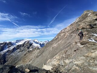 Oggi sopra le nuvole… necessari ramponi e picca perché sia sulla cresta che sulla normale c’è neve dura.