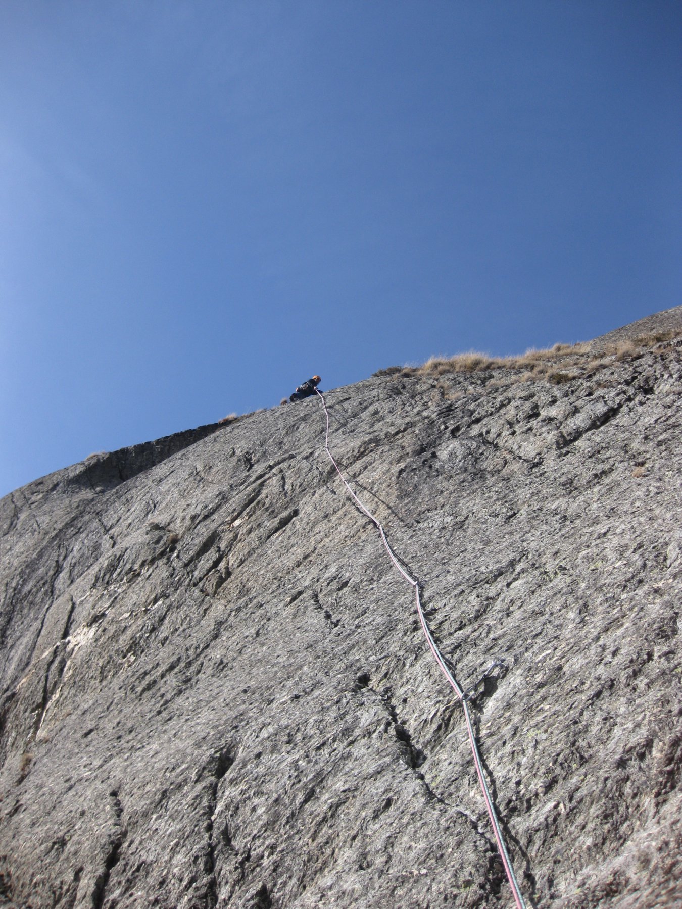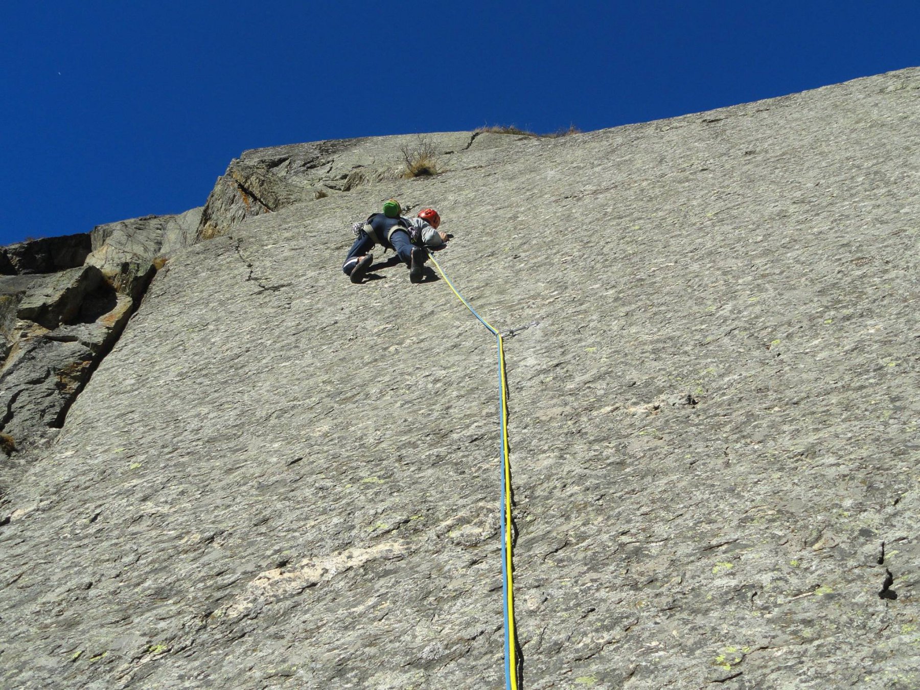 Discesa in corda doppia lungo la via o su Calimero corda da 70 sufficiente