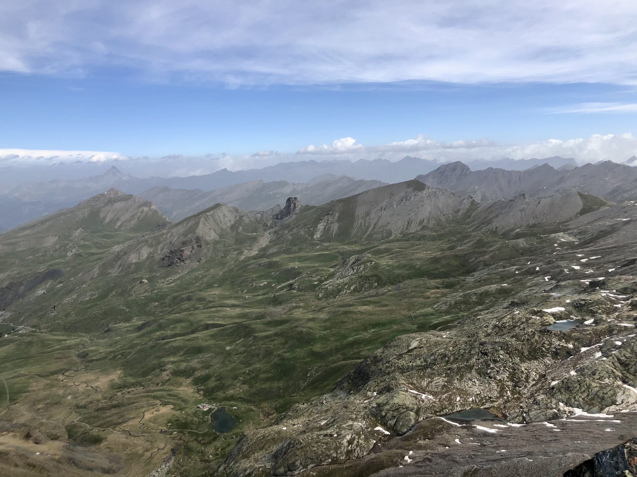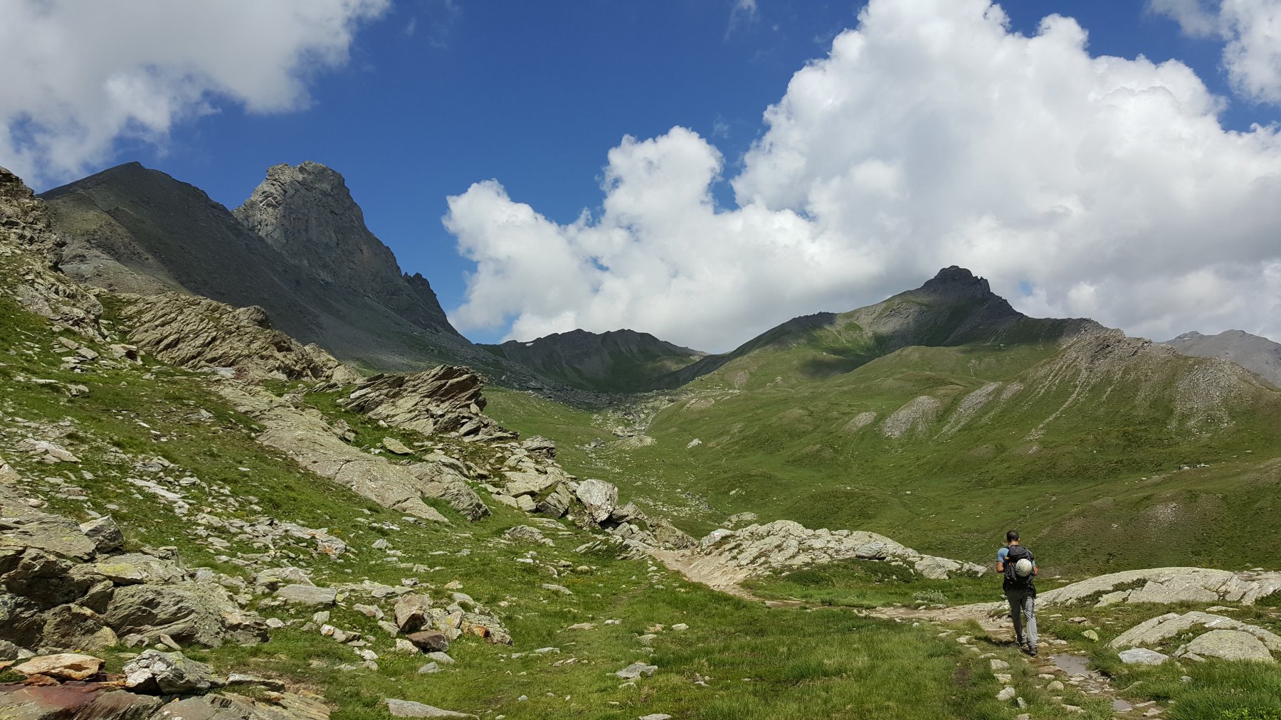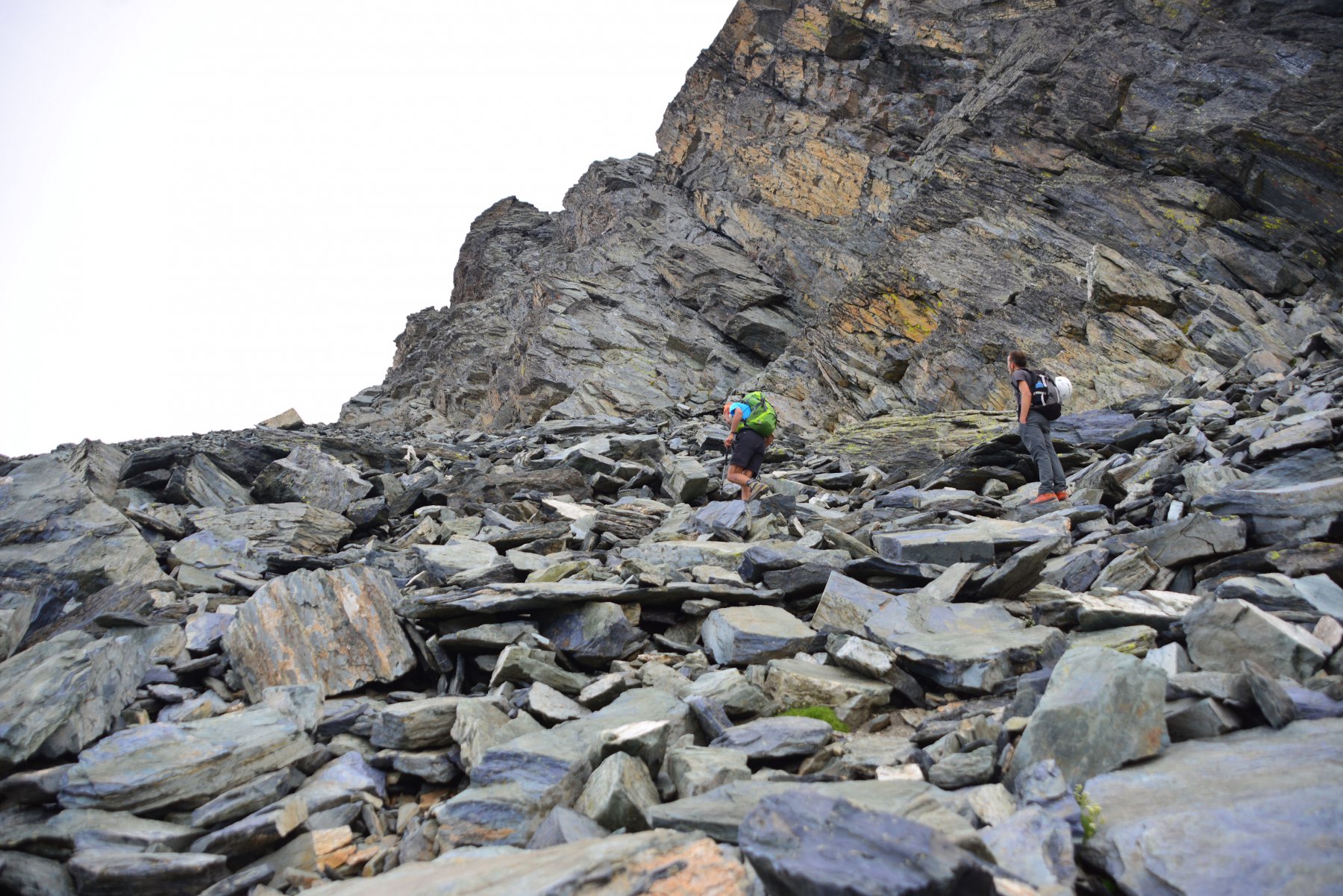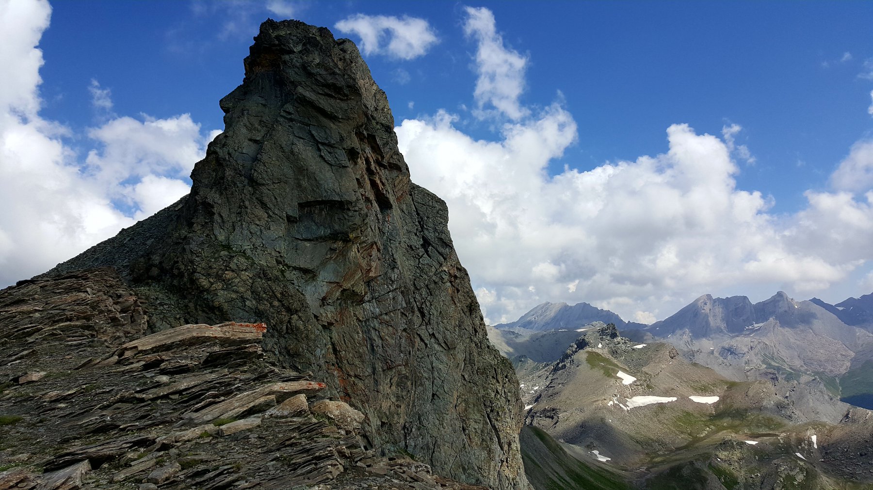 Raggiunto il culmine del crestone, in una zona di terra nera con alcuni roccioni, si scende leggermente alla depressione alla base del Roc della Niera, riprendendo poi la salita su marcata traccia che si snoda nella facile pietraia (percorso che si fa via via più ripido).