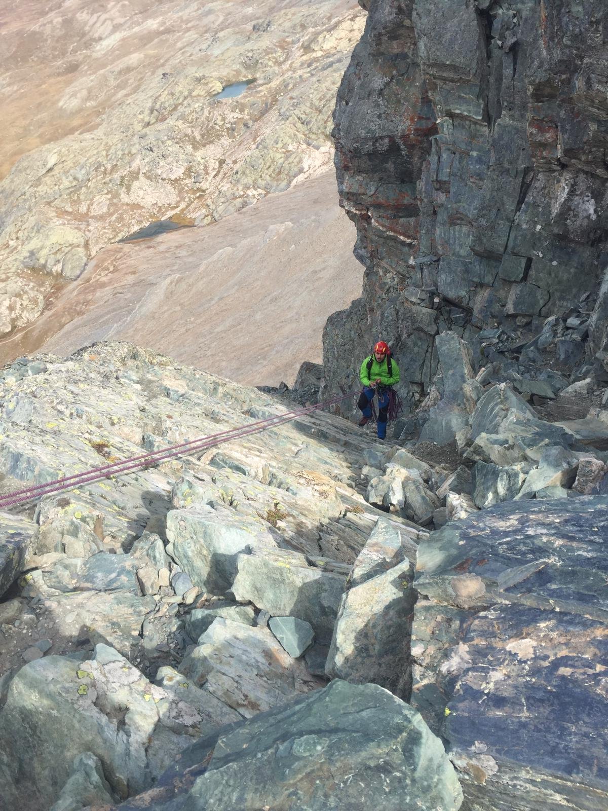 La via può anche essere discesa con due corde doppie.