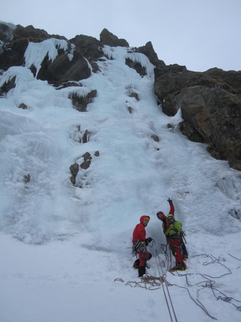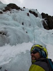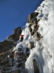 L1= 50m: Successione di risalti a 75-80; sosta su ghiaccio