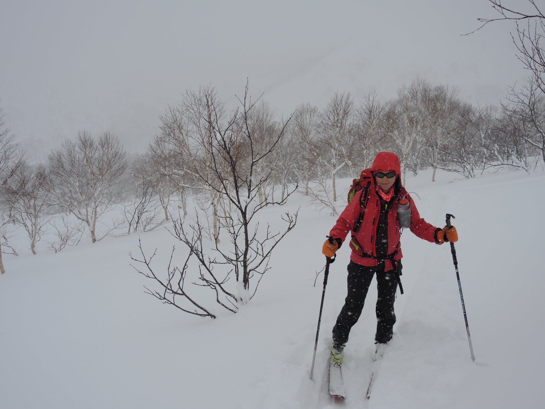 Ultima gita del viaggio in Hokkaido: tempo in rapido peggioramento, con una copiosa nevicata, forte vento e scarsa visibilita’. Salita comunque piacevole e divertente; in discesa abbiamo sbagliato pista e siamo scesi a Niseko.
